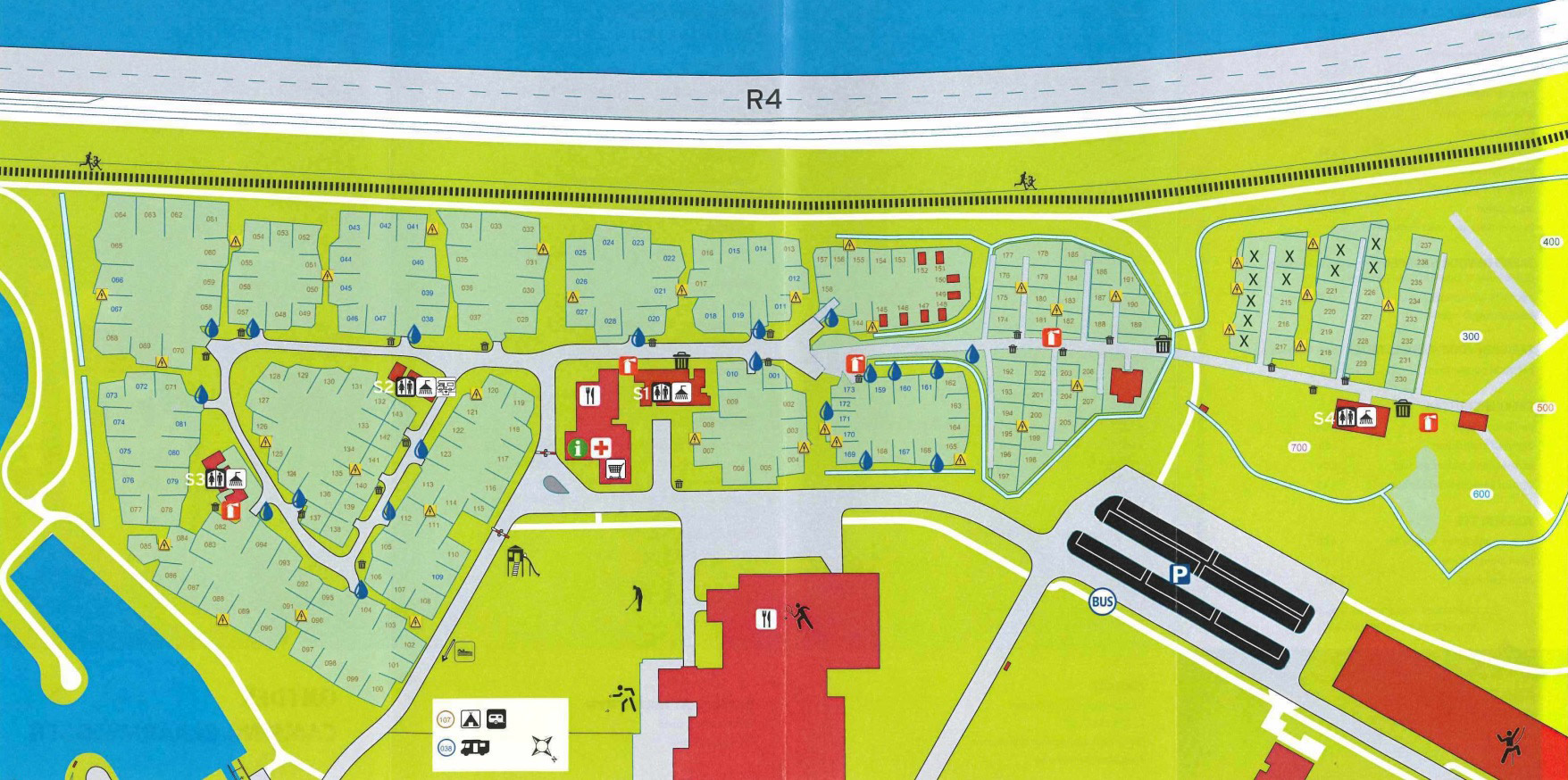 Ob für einen Tag oder mehrere Wochen, Touristen sind vom 1. März bis zu den Herbstferien immer willkommen. Der Campingplatz erstreckt sich über 10 Hektar mit Stellplätzen für Wohnmobile (bis zu 7 m), für Zelte/Wohnwagen, für Zelte auf einem Zeltplatz und mit 8 Hütten (für 4 Personen). Es gibt 4 Sanitäranlagen mit Duschen, Waschbecken und Toiletten sowie die Möglichkeit, Wäsche zu waschen und zu trocknen.