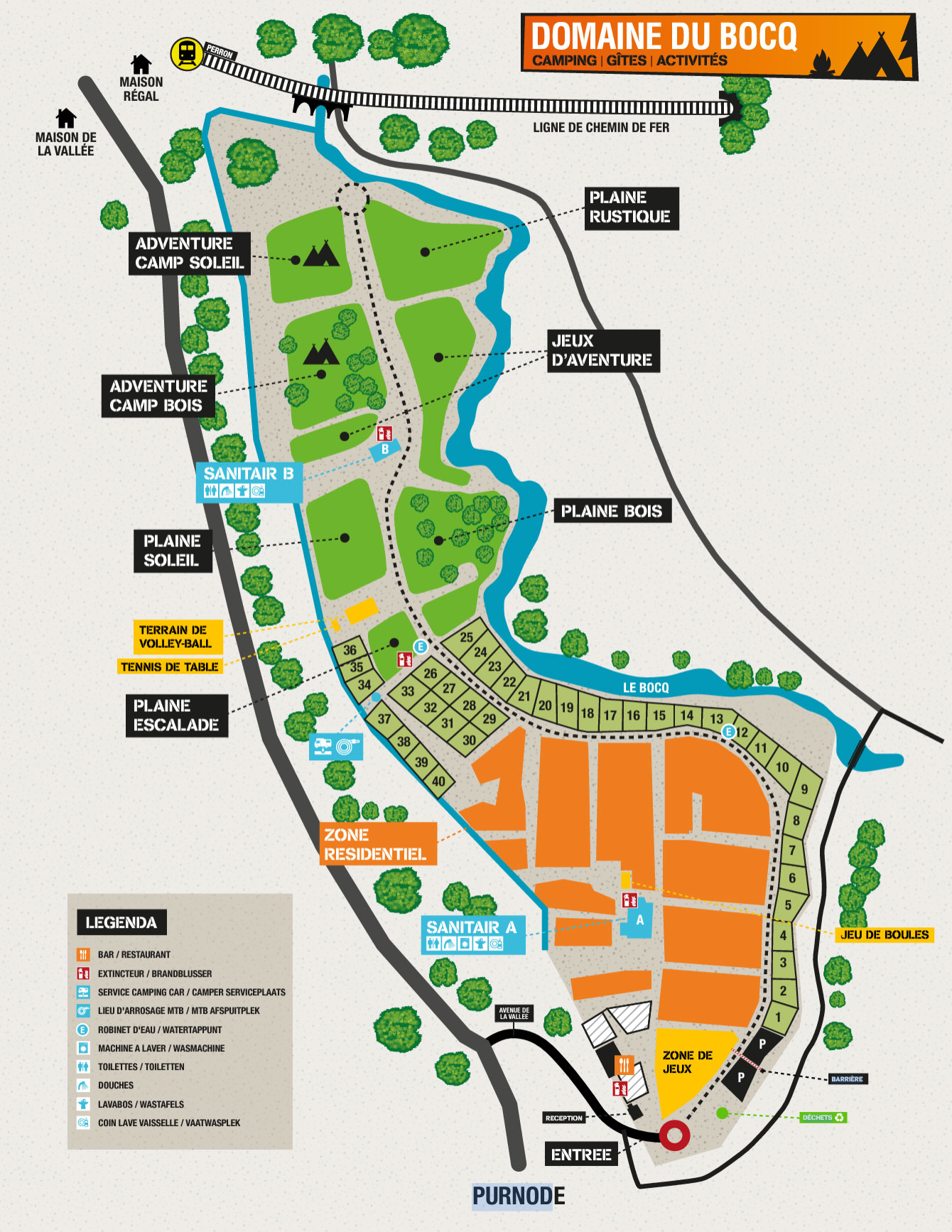 Der Campingplatz de Bocq ist wunderschön im Tal des Flusses Bocq in dem kleinen Dorf Purnode in den belgischen Ardennen gelegen. Auf dem Campingplatz genießen Sie die Ruhe, einen schönen Spaziergang durch die Natur und die Umgebung.