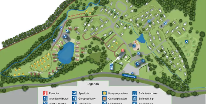 Auf dem Campingplatz können Sie mit Ihrem Zelt, Wohnwagen oder Wohnmobil auf großzügigen Stellplätzen in Wassernähe campen. Wenn Sie keine eigene Campingausrüstung haben, können Sie auch ein Mobilheim oder ein voll ausgestattetes Safarizelt mieten. Die Safarizelte haben Schlafplätze für 6 Personen, eine Küche und eine geräumige Terrasse mit Sonnensegel.