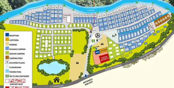 Der Campingplatz Lohan liegt im schönen Tal der Ourthe, 3 km vom Zentrum der "Perle der Ardennen" entfernt. Ein idealer Campingplatz für Ruhesuchende, Naturliebhaber und Familien mit Kindern.