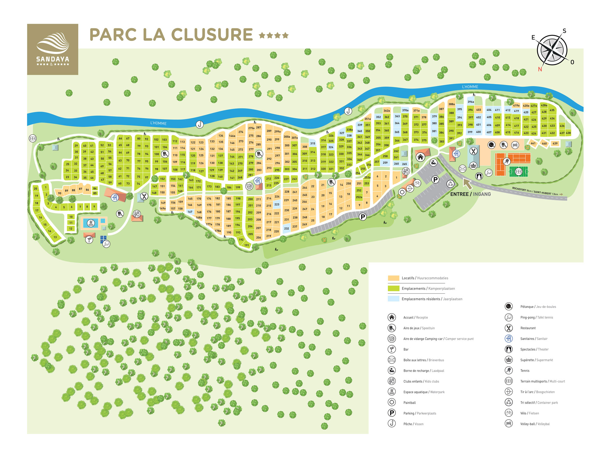 Inmitten der bewaldeten Hügel der belgischen Ardennen liegt der Familiencampingplatz Sandaya Parc La Clusure im Herzen der Ardennen am Ufer des Flusses L'Homme. Hier können Sie sich wirklich in der schönen Natur entspannen.