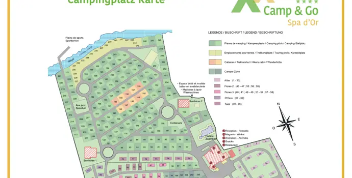 Der Campingplatz Spa d'Or liegt in den belgischen Ardennen. Diese Region ist reich an Aktivitäten, Sehenswürdigkeiten und Naturparks. Der ideale Ort, wenn Sie Ruhe suchen, die Natur genießen und tolle Wanderungen und Radtouren machen wollen.