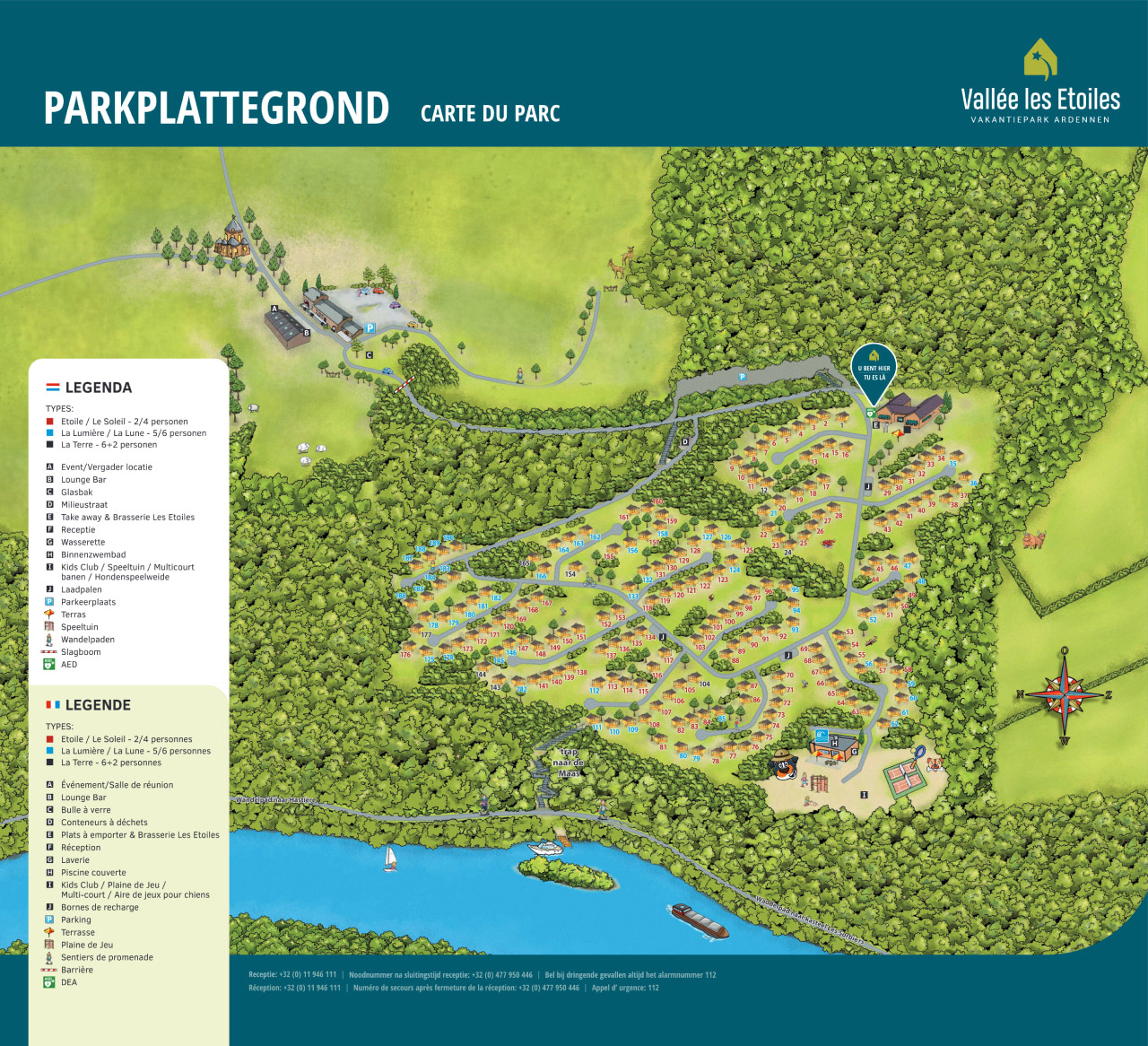 Dieser Ferienpark scheint an die Ardennen geklebt zu sein. Und das hat den großen Vorteil, dass Sie von Ihrer Veranda aus eine fantastische Aussicht haben. Hügel und das Maastal unter Ihnen. Über eine Treppe gelangen Sie vom Park zur Maas. In den Sommermonaten legt hier täglich ein Ausflugsboot vom Steg ab.