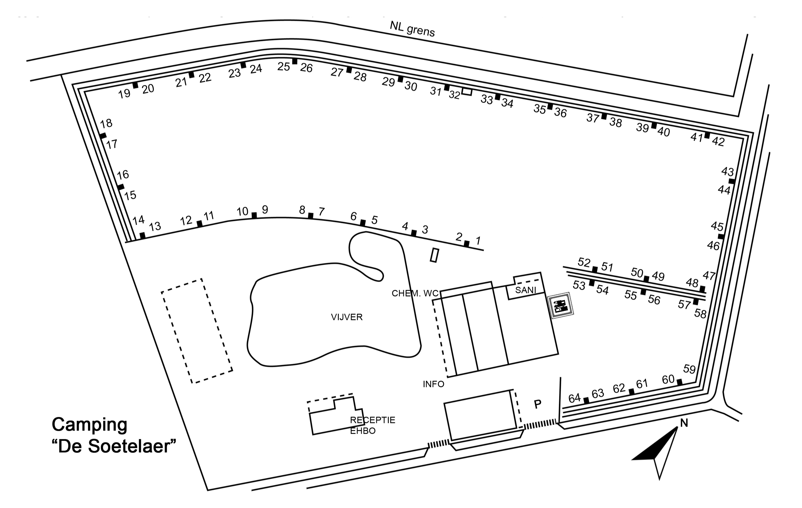 Die Stellplätze auf dem Campingplatz de Soetelaer sind für zwei Personen ausgelegt. Eine weitere Person aus der gleichen Familie ist natürlich willkommen. Jeder Stellplatz ist mit Wasser-, Abwasser- und Stromanschluss (6 A) ausgestattet. Der Campingplatz ist weitläufig und verfügt über eine offene Wiese mit Jeu de Boules-Plätzen. Außerdem gibt es einen Angelteich. Ideal, wenn Sie in Ihrem Urlaub angeln möchten!