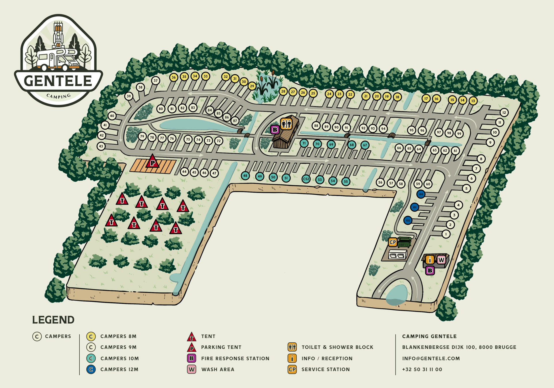Camping Gentele ist ein ruhiger und grüner Ort, um Ihren Urlaub zu verbringen. Dieser charmante Campingplatz liegt auf dem Lande, etwas außerhalb des Zentrums von Brügge. Auf dem Campingplatz finden Sie mehr als 100 geräumige Stellplätze für Wohnmobile und einige Stellplätze für Zelte. Es ist der ideale Ort für alle, die die Natur lieben, aber auch die Stadt oder das Meer erkunden möchten.