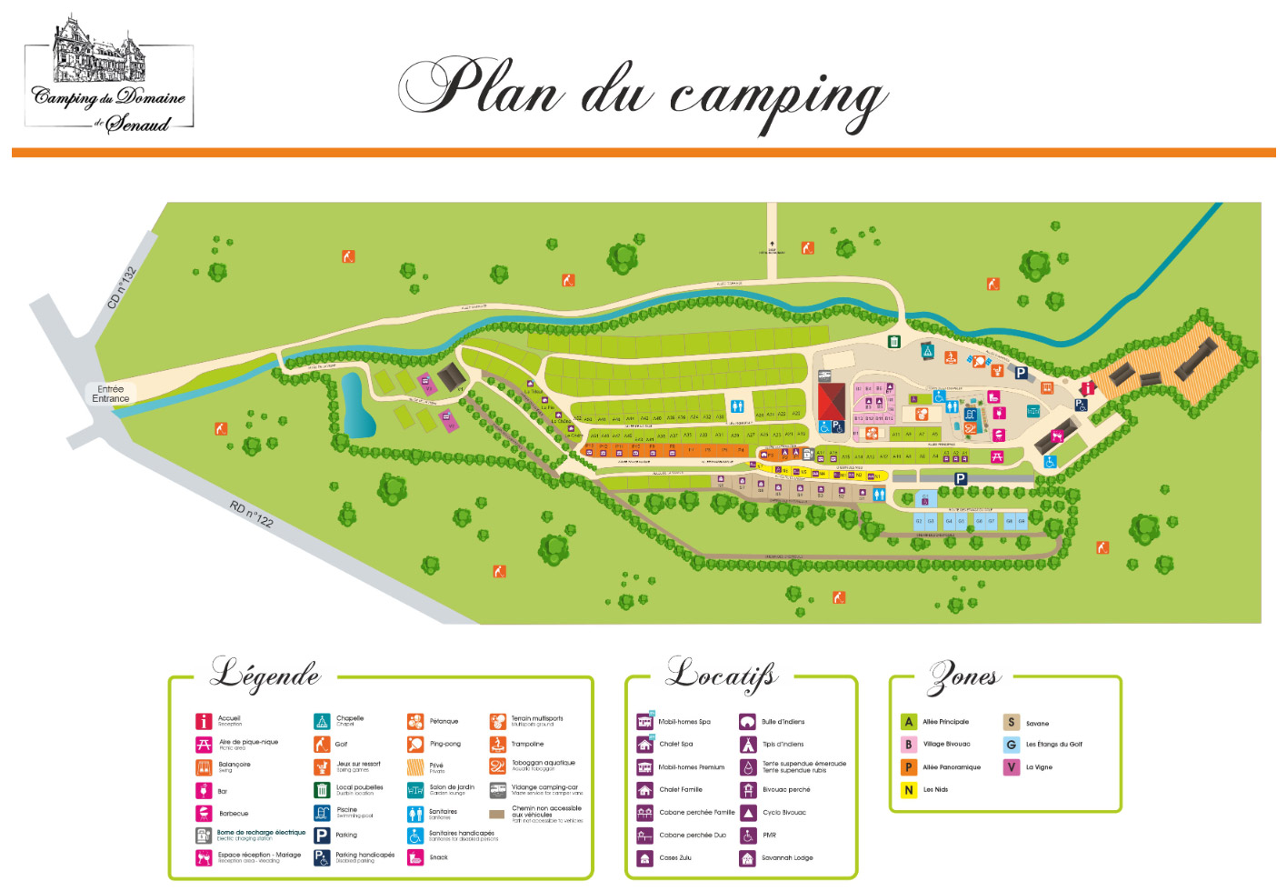 Sie fahren die Einfahrt hinauf, überqueren die kleine Brücke über das Wasser und dann erwartet Sie Allee D'Arrivee. 50 geräumige Stellplätze stehen zur Auswahl. Vom einfachen Wohnwagenplatz in der Natur bis zum kompletten Glamping-Erlebnis. All das wird von einer jungen Familie betrieben, die ihren Campingplatz jedes Jahr ein bisschen schöner machen will. Und es sind genau diese fleißigen Menschen, die Ihren Campingurlaub zu einem unvergesslichen Erlebnis machen. Ihr Frühstückskorb wird Ihnen an die Tür geliefert, die Sanitäranlagen sind in perfektem Zustand und zum Abendessen können Sie die überdachte Terrasse genießen.
