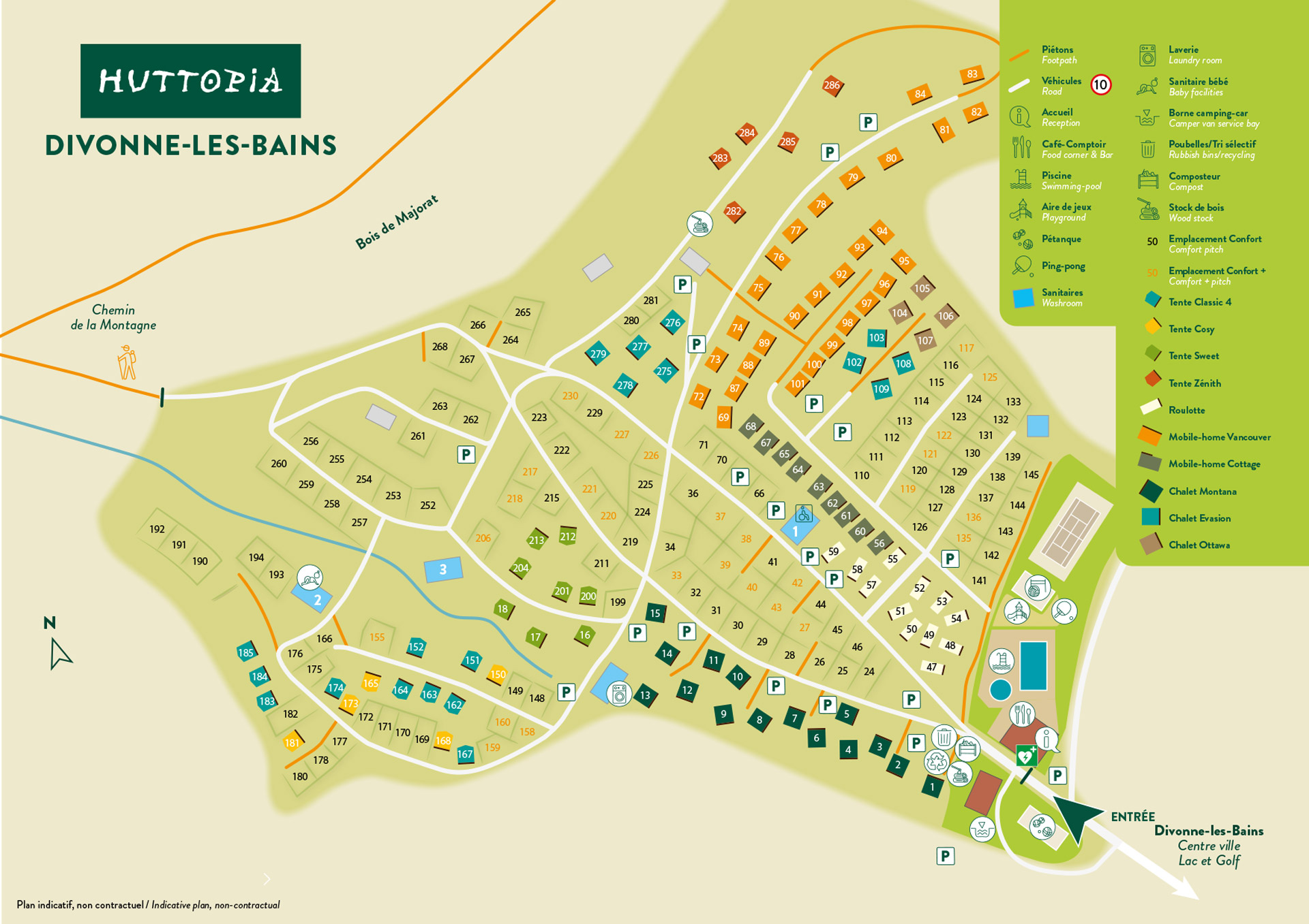 Wo liegt dieser Campingplatz Huttopia, werden Sie sich fragen? Nun, nur 25 Kilometer nördlich von Genf. Zwischen dem Jura und den Alpen. Und an der Grenze zur benachbarten Schweiz. Von diesem Terrassencampingplatz aus können Sie an klaren Tagen den Mont Blanc sehen. Vom Campingplatz aus können Sie schöne Wanderungen unternehmen. Oder einen Tagesausflug zum Genfer See oder nach Chamonix.