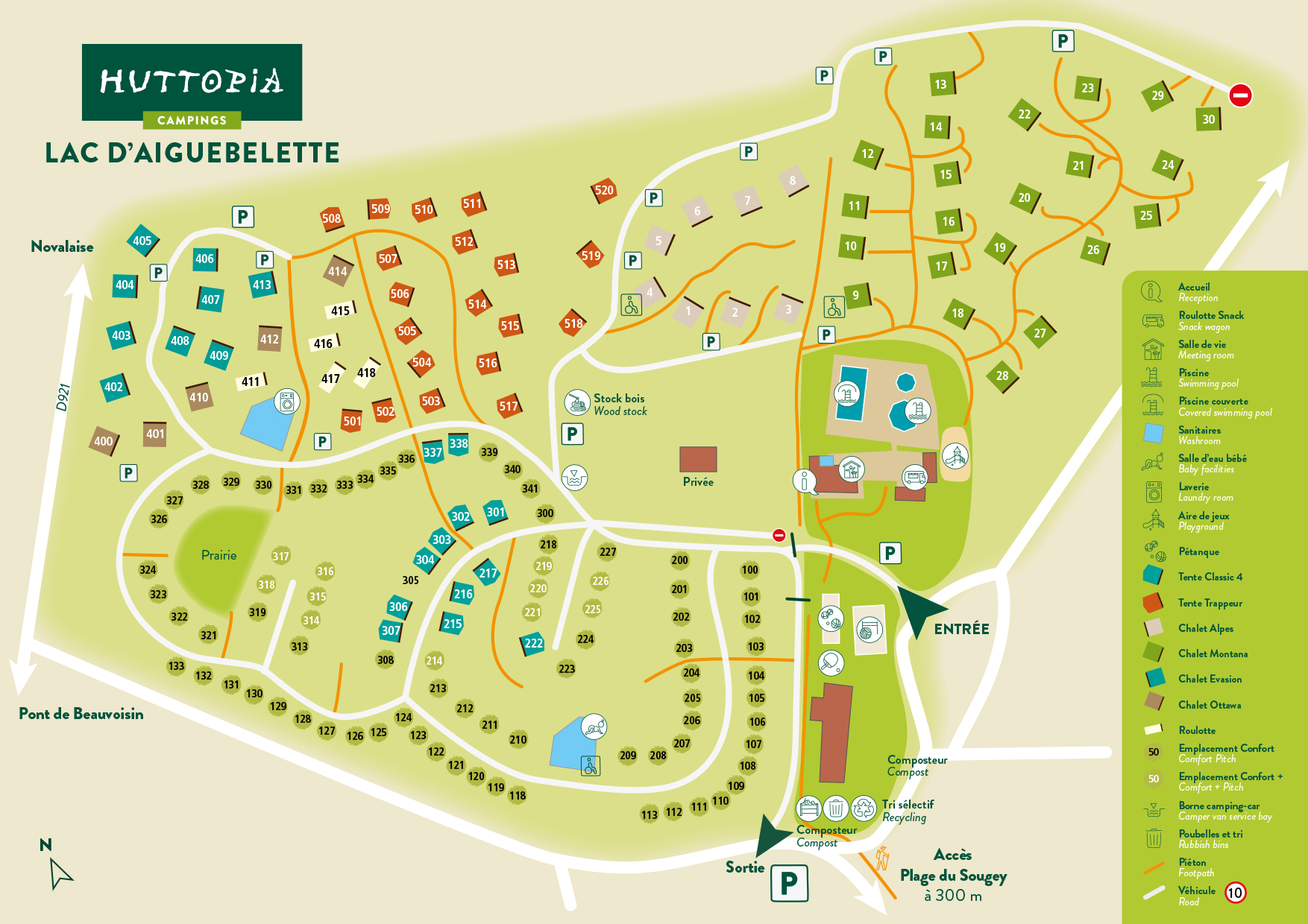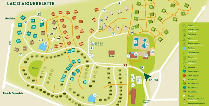 Sie können auf dem Familiencampingplatz Huttopia Lac d'Aiguebelette an einem wunderschönen grün-blauen See mit Blick auf die Berge campen. Dieser See ist einer der wärmsten in Frankreich mit einer Durchschnittstemperatur von 27 Grad im Sommer. Auch auf dem Campingplatz gibt es Wasserspaß. Es gibt zwei Swimmingpools, von denen einer überdacht ist, und ein separates Planschbecken. Auf der Holzterrasse an den Schwimmbädern stehen Sonnenliegen bereit.