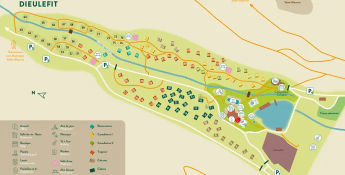 Dies ist wirklich ein Campingplatz für Zeltcamper; leider gibt es keinen Platz für Wohnwagen, Vans usw. Das macht ihn zu einem Campingplatz für klassisches Camping in der Natur. Jeder Platz ist anders, so können Sie unter Bäumen oder an einem Bach campen. Der Platz ist außerdem autofrei. Und noch eine gute Nachricht: Es gibt verschiedene Arten von möblierten Zelten zu mieten. Von 2 bis 6 Personen. Jeder Stellplatz hat einen Picknicktisch, also immer her mit den Croissants!