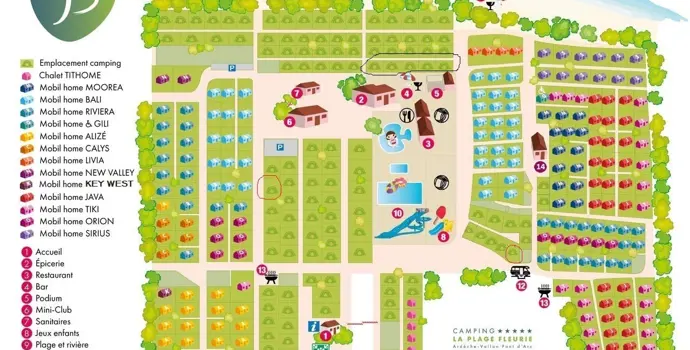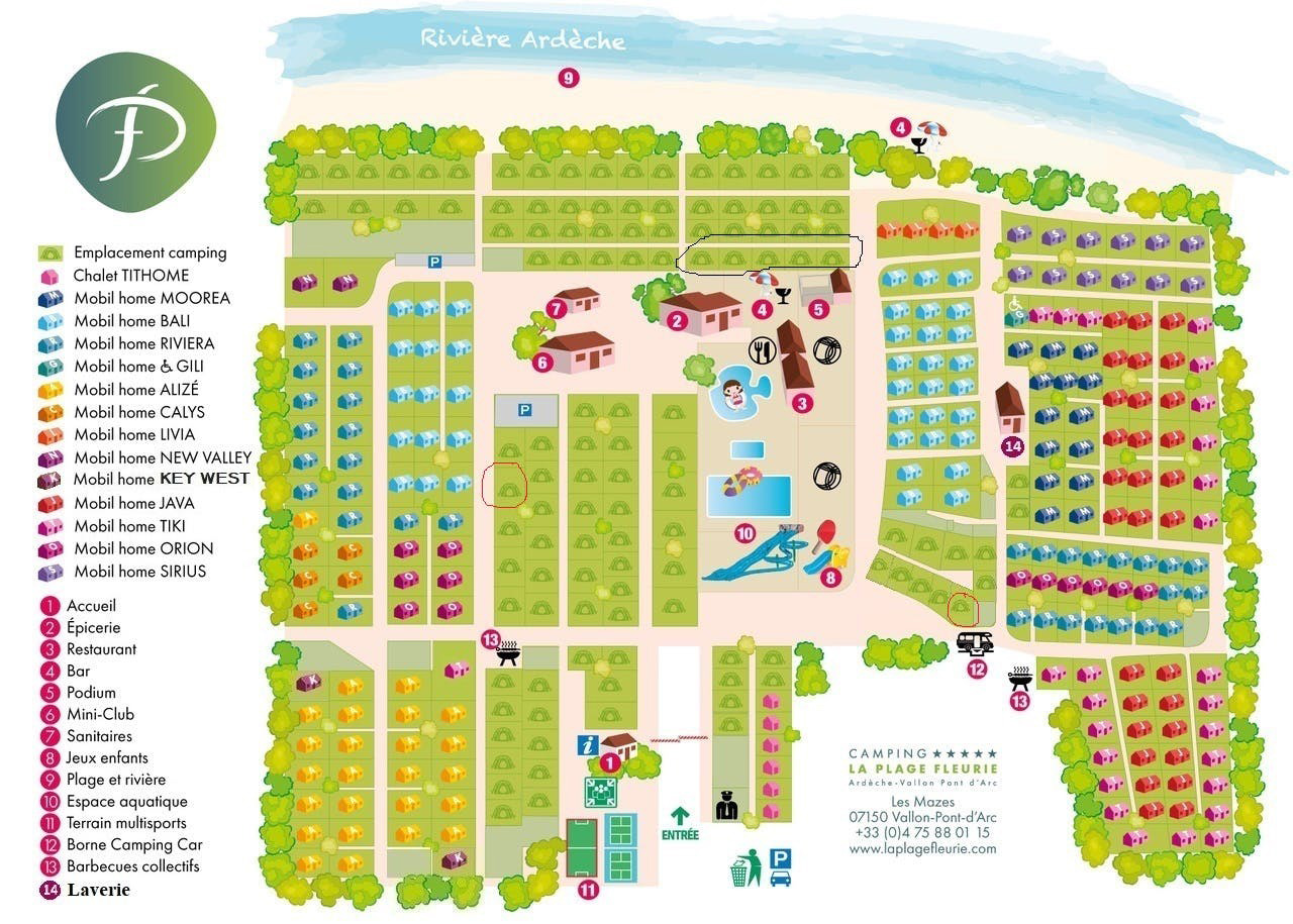 Camping la Plage Fleurie ist ein beliebter mittelgroßer Fünf-Sterne-Familiencampingplatz in der Nähe von Vallon Pont d'Arc. Wie zentral wollen Sie in der Ardèche wohnen? Außerdem liegt dieser Campingplatz direkt am Fluss und Sie können sogar vom Campingplatz aus Kanu fahren.
