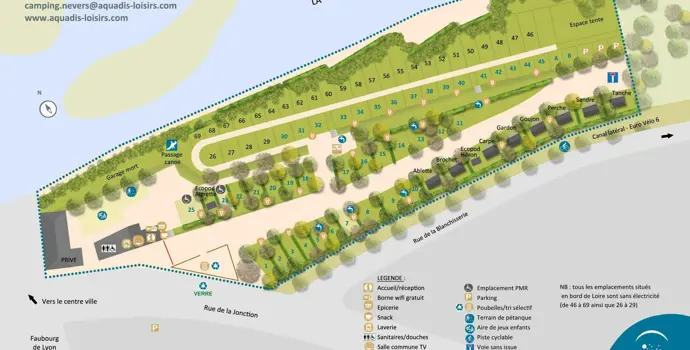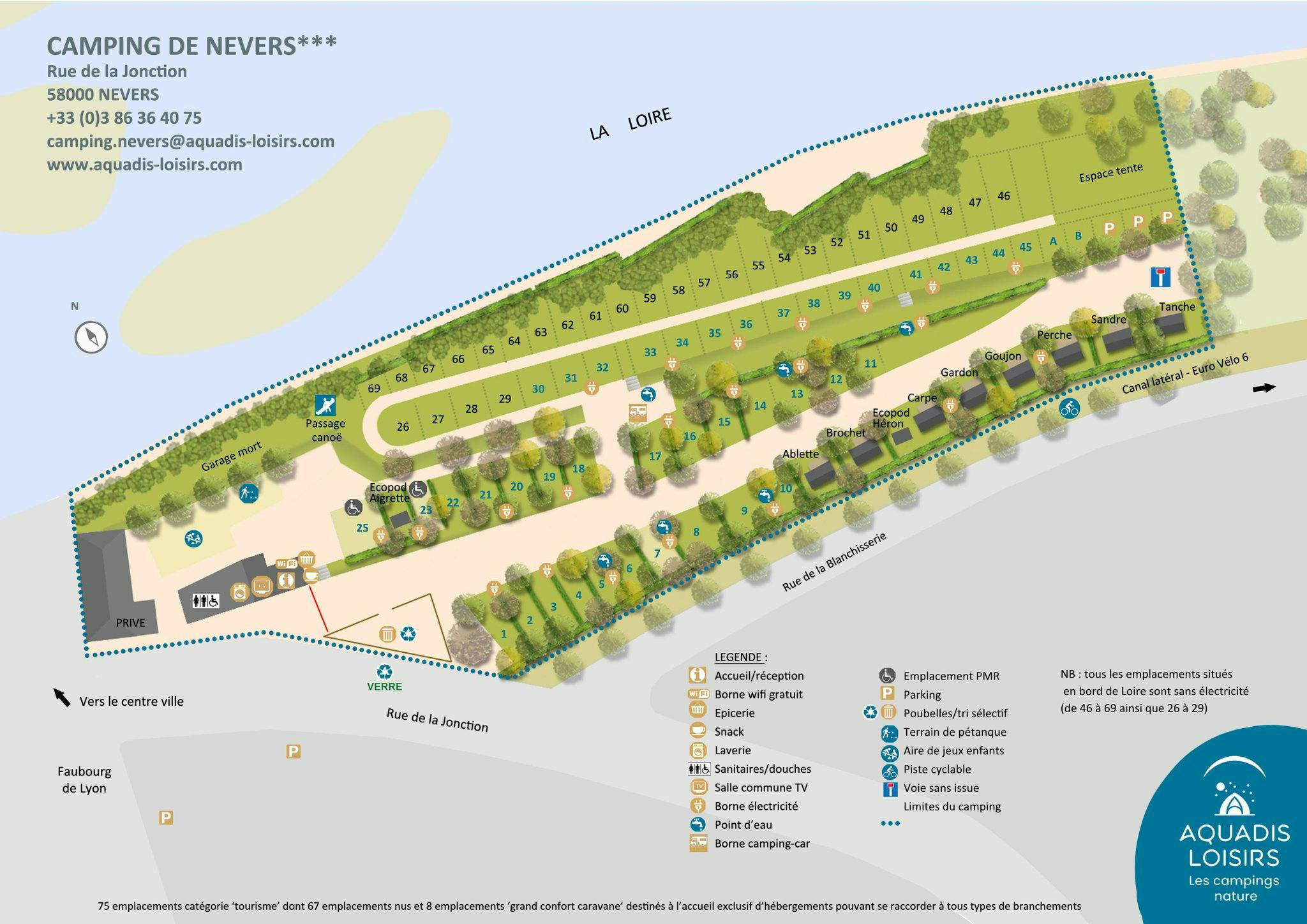 Sie wohnen in der Region Burgund, etwa 250 Kilometer südlich von Paris. Der Campingplatz verfügt über etwa 70 Stellplätze mit oder ohne Stromanschluss, mehrere Chalets und zwei Wanderhütten. Hier kann man schon ab 1 Nacht übernachten. Das ist praktisch für einen Zwischenstopp oder wenn Sie die Stadt Nevers besuchen möchten. Auch Angler verbringen hier gerne einen oder mehrere Tage, weil sie in der Loire angeln können. Übrigens kann man in der Loire auch gut schwimmen. Der Campingplatz selbst verfügt allerdings nicht über ein Schwimmbad. Die Öffnungszeiten sind großzügig: vom 1. März bis zum 2. November. Es gibt Stellplätze am Ufer, aber auch weiter oben auf der Wiese und unter den Bäumen. Auch Wohnmobilisten sind herzlich willkommen.
