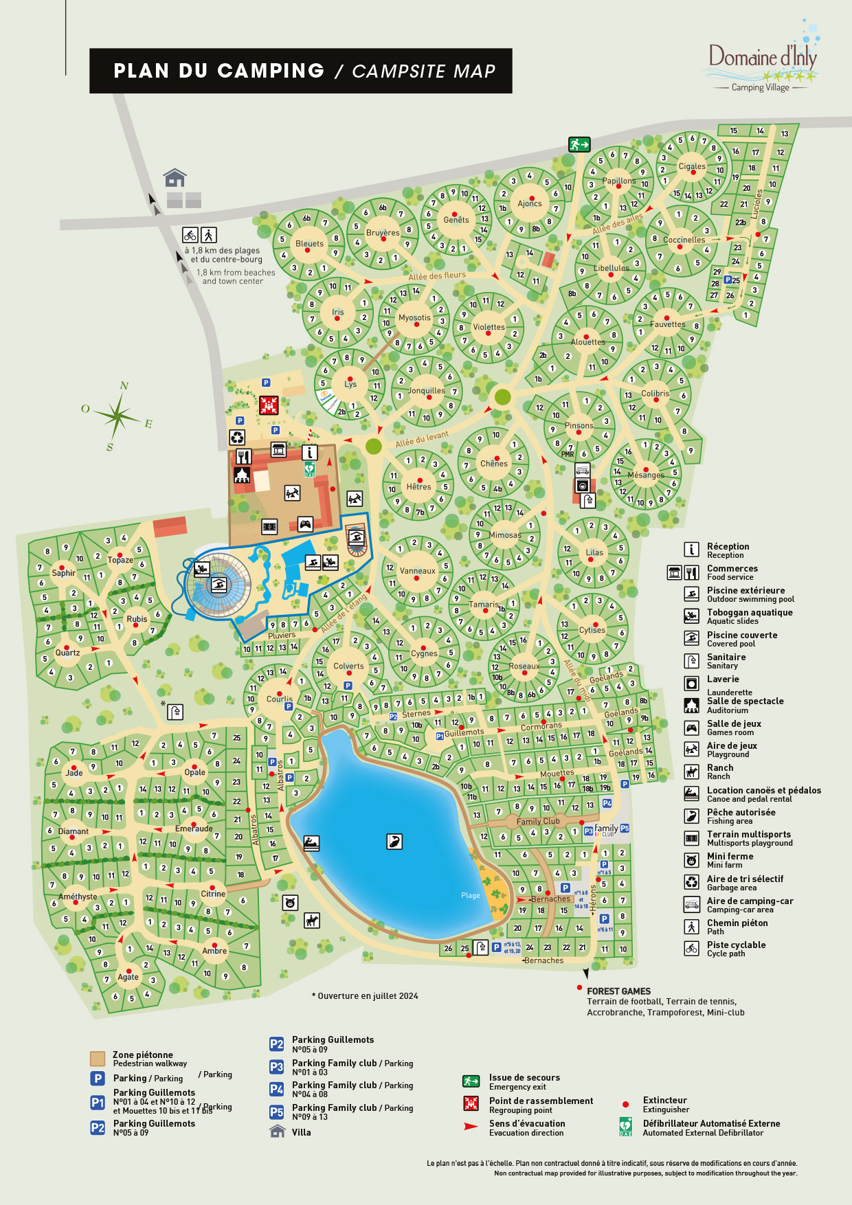 Hier kann man sowohl campen als auch vermieten. Es lohnt sich, einen Blick auf die verschiedenen Arten von Campingplätzen, aber auch auf die Chalets zu werfen. Der Campingplatz liegt in einem bewaldeten Gebiet, wo man sowohl Sonne als auch Schatten haben kann. Dann zum Unterhaltungsprogramm, denn auch hier wird an Jung und Alt gedacht. Wachen Sie mit Aquafitness auf, gehen Sie gemeinsam auf eine Schnitzeljagd oder machen Sie eine sportliche Aktivität. Auch die Abende auf der Domaine D'Inly sind ein großer Spaß. Auch für Teenager ist gesorgt!