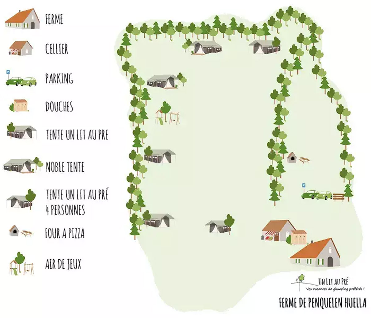 In der bretonischen Landschaft, umgeben von Natur, finden Sie den Campingplatz La Ferme de Penquelen. Hier campen Sie in Zelthäusern in der Nähe eines Bio-Milchviehbetriebs. Von Ihrer Veranda aus haben Sie einen Blick auf grasende Kühe. Die Kinder lieben es, im Baumhaus zu spielen.