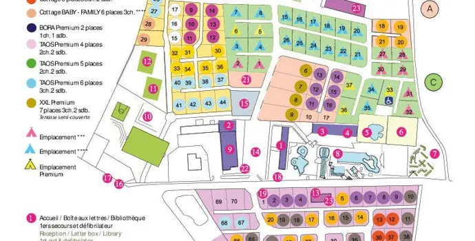 Der Campingplatz selbst ist nicht allzu groß und seine Einrichtungen befinden sich in der Mitte des Campingplatzes. So können Sie von jedem Punkt aus die Bar, den Laden, den Spielplatz oder den Wasserpark in kürzester Zeit erreichen. Vom Babyclub über Minigolf bis hin zum Whirlpool - ein Tag auf dem Campingplatz ist schnell ausgefüllt.