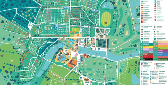 Sie campen mitten in einem großen Naturpark, und das ist nicht nur ein Paradies für Kinder, auch Erwachsene werden sich hier prächtig amüsieren. Entspannen Sie sich in der Sauna oder im Whirlpool, nehmen Sie eine Unterrichtsstunde auf dem hauseigenen Golfplatz oder reiten Sie in der hauseigenen Reitschule. Auch was Restaurants und Geschäfte angeht, brauchen Sie das Gelände nicht wirklich zu verlassen. Es gibt eine Eisdiele, eine Boutique, eine Pizzeria, Bars, Food Trucks und einen wöchentlichen Sommermarkt am Dienstag. Gehen Sie mit Ihrem Kind zum Ziplining, Klettern oder machen Sie den Baumkletterkurs. Sie werden sicher mit spannenden Geschichten und Fotos nach Hause kommen!