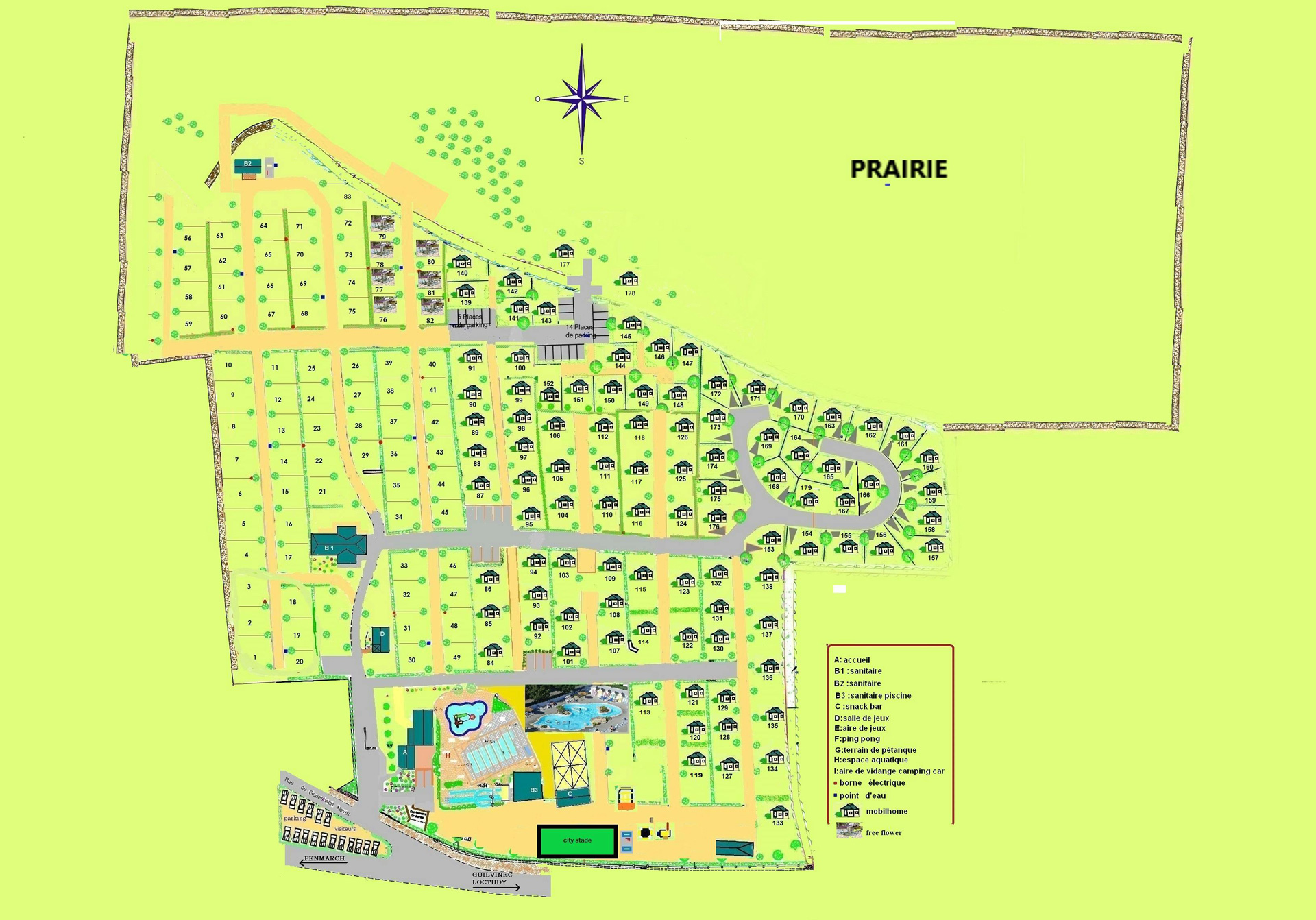 Die Bretagne ist langgestreckt und eine sehr vielseitige Region. Dieser Familiencampingplatz befindet sich an der Südküste. Den Strand erreichen Sie in wenigen Minuten. Sie können hier auch entlang der Küste radeln. Und Frankreichs wahre Genießer wissen: Nichts geht über einen großen Supermarkt in Frankreich. Vom Campingplatz aus erreichen Sie zwei davon nach einer kurzen Fahrt.