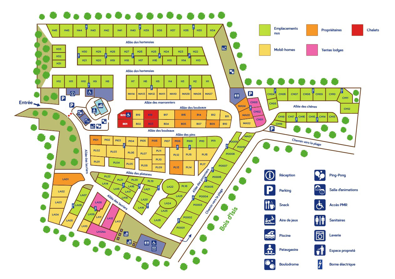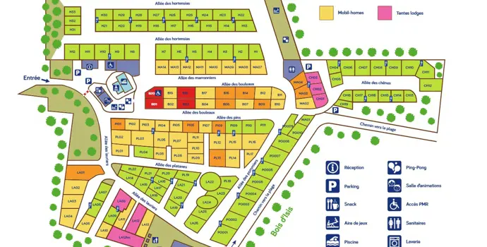 Der Campingplatz selbst ist schön und ruhig und besonders grün mit seinen vielen Blumen, Pflanzen und Bäumen. Der ganze Platz sieht ein bisschen wie ein Park aus. Wählen Sie einen geräumigen Stellplatz oder eine Mietunterkunft. Zu ersteren, den Stellplätzen, gehören auch private Sanitäranlagen. Sie sind durch Hecken oder andere Grünflächen von Ihren Nachbarn getrennt, so dass Sie viel Privatsphäre haben. Sobald Sie auf den Campingplatz fahren, werden Sie feststellen, dass sich die meisten Einrichtungen am Eingang befinden. Die Bouleplätze befinden sich auf der Rückseite des Campingplatzes.