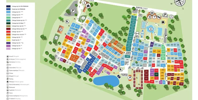 Der Campingplatz bietet ausschließlich Mietunterkünfte in Form von 250 Mobilheimen aller Arten und Größen an. Die einzelnen Stellplätze rund um Ihr Mobilheim sind geräumig und gut durch Grünanlagen abgegrenzt. Die neueste Art von Unterkünften sind die Premium-Mobilheime. Der Campingplatz öffnet seine Pforten von Anfang April bis Ende September, Ankünfte sind an jedem Tag der Woche möglich, bei einer Mindestaufenthaltsdauer von 3 Nächten. Für die nächste Saison (2026) sind eine Vergrößerung der Terrasse beim Restaurant und der Bau eines Amphitheaters geplant. Außerdem wird es eine neue Sonnenterrasse am Schwimmbad geben.
