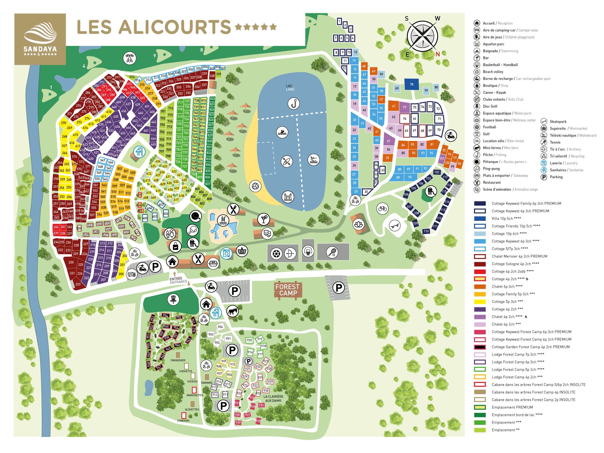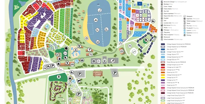 Sie können zwischen verschiedenen Stellplatztypen wählen: direkt am See, mit privaten Sanitäranlagen oder nur als Zeltplatz. Apropos See, was für ein schöner Privatsee gehört zu diesem Campingplatz. Mit einem großen Sandstrand zum Spielen und Faulenzen. Aber auf dem Wasser ist es Zeit für Action. Trauen Sie sich, Wasserski zu fahren oder die Schlauchbootbahn zu durchqueren? Die Kinder werden auch eine Stunde auf einem Tretboot über den See lieben. Neben dem Camping bietet Les Alicourts auch eine breite Palette an Mietunterkünften. Wenn Sie mit Kindern zum Campen kommen, ist es schön, im autofreien Familienbereich zu wohnen. Sie haben dann immer einen Spielplatz in Sichtweite. In einem anderen Bereich des Campingplatzes, etwas versteckter im Grünen, befinden sich die Baumhäuser und Waldhütten.