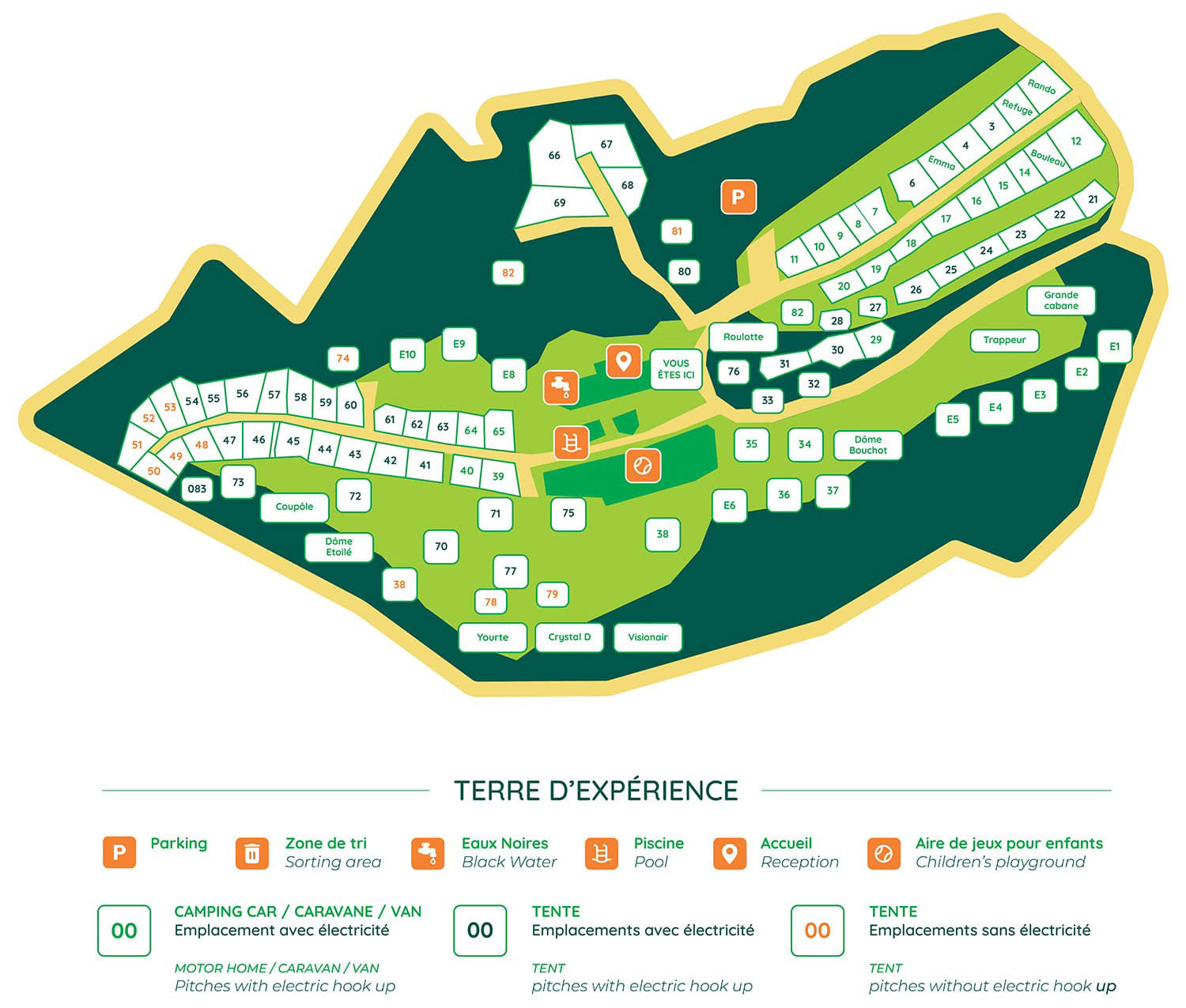 Wenn Sie mit Ihrer eigenen Campingausrüstung kommen, sollten Sie wissen, dass Sie in einer grünen Umgebung campen. Die Natur nimmt hier ihren Lauf und Sie können inmitten der Natur campen. Außerdem gibt es 16 spezielle Glamping-Unterkünfte. Entscheiden Sie sich für eine Jurte, eine Kuppel unter dem Sternenhimmel oder ein Hängezelt? Wenn Sie auf der Suche nach etwas Besonderem sind, ist der Campingplatz du Mettey der richtige Ort.