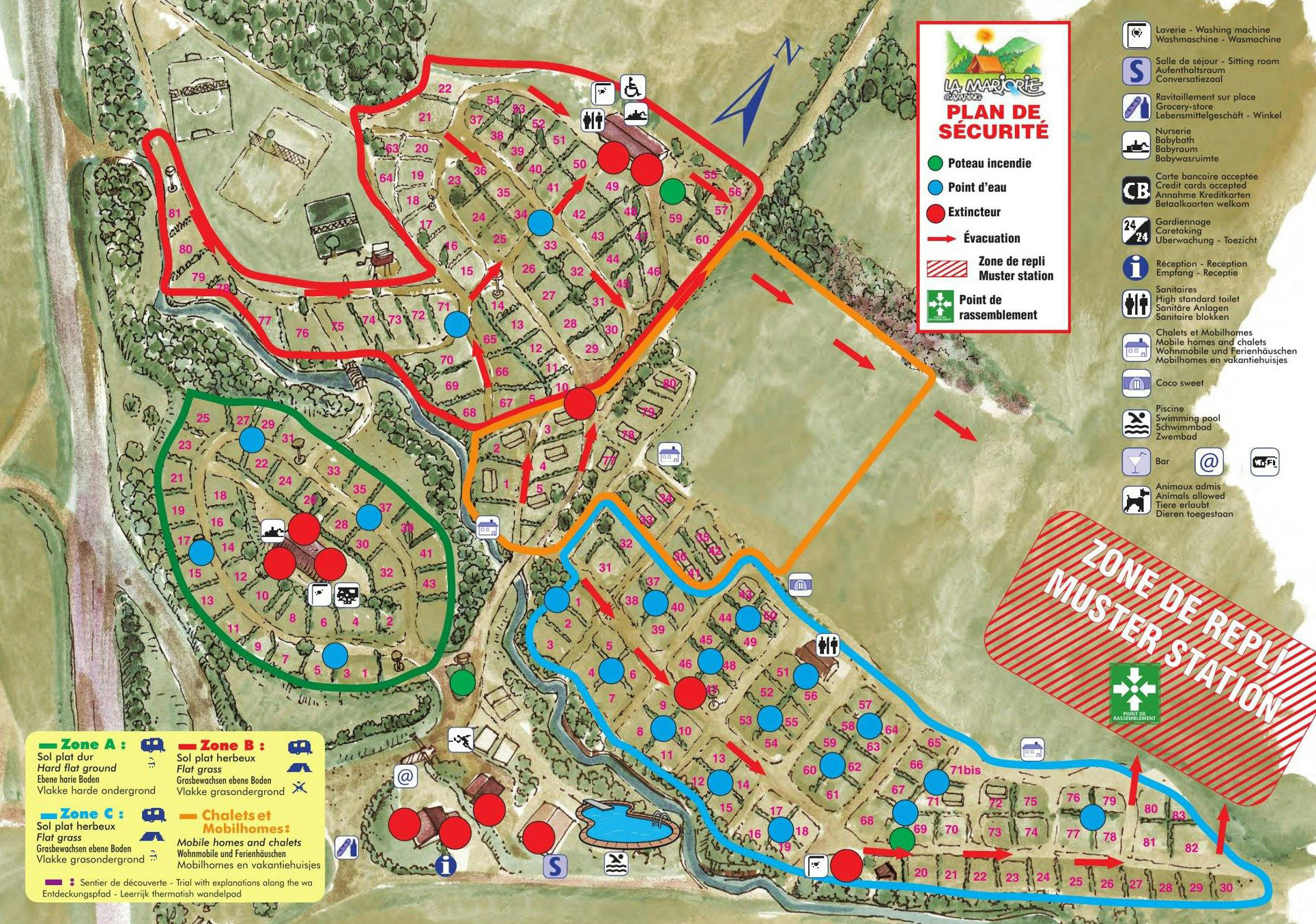 Der Campingplatz befindet sich in ruhiger, waldreicher Lage und liegt dennoch in der Nähe der Autobahn in Richtung Osten (Schweiz) oder weiter südlich. Das macht ihn zu einem beliebten Zwischenstopp-Campingplatz, aber auch zu einem guten Ziel für Familien, Radfahrer und Naturliebhaber, die den Jura und sogar das Burgund entdecken möchten. Die meisten Stellplätze sind geräumig und durch Hecken voneinander getrennt, um Schatten und Privatsphäre zu gewährleisten. Es gibt auch gepflasterte Stellplätze für Wohnmobile. Neu sind die "coco sweet"-Zelte, aber es gibt auch Mobilheime und Chalets. Für größere Gruppen von bis zu 8 Personen gibt es Ferienhäuser.