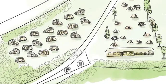 Da der Campingplatz mehrere Jahre geschlossen war und erst vor kurzem wiedereröffnet wurde, sind die Einrichtungen sehr bescheiden. Folglich hat der Campingplatz noch keine Sternebewertung. Nicht umsonst lautet der Slogan des Campingplatzes"Zurück zu den Grundlagen, zurück zur Natur".