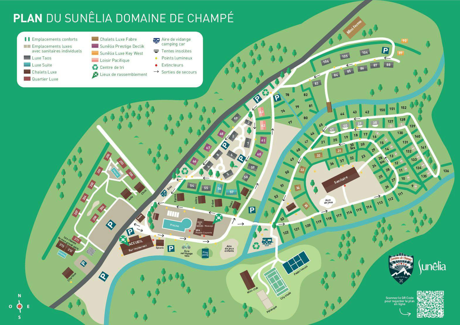 Sunelia Domaine de Champe ist ein ruhiger Familiencampingplatz mit über 100 Stellplätzen. Er ist klein und daher auch für Kinder geeignet. Großzügige Stellplätze, einige davon mit eigenen Sanitäranlagen. Ein luxuriöser Fünf-Sterne-Campingplatz mit dito Einrichtungen. Bei der Ankunft werden Sie in einer für die Region typischen Berghütte empfangen, in der sich die Rezeption und auch die Bar befinden. Die Bar verfügt auch über eine überdachte Terrasse mit herrlicher Aussicht. Fühlen Sie sich willkommen! Genießen Sie die Innen- und Außenpools, SPA und Unterhaltung.