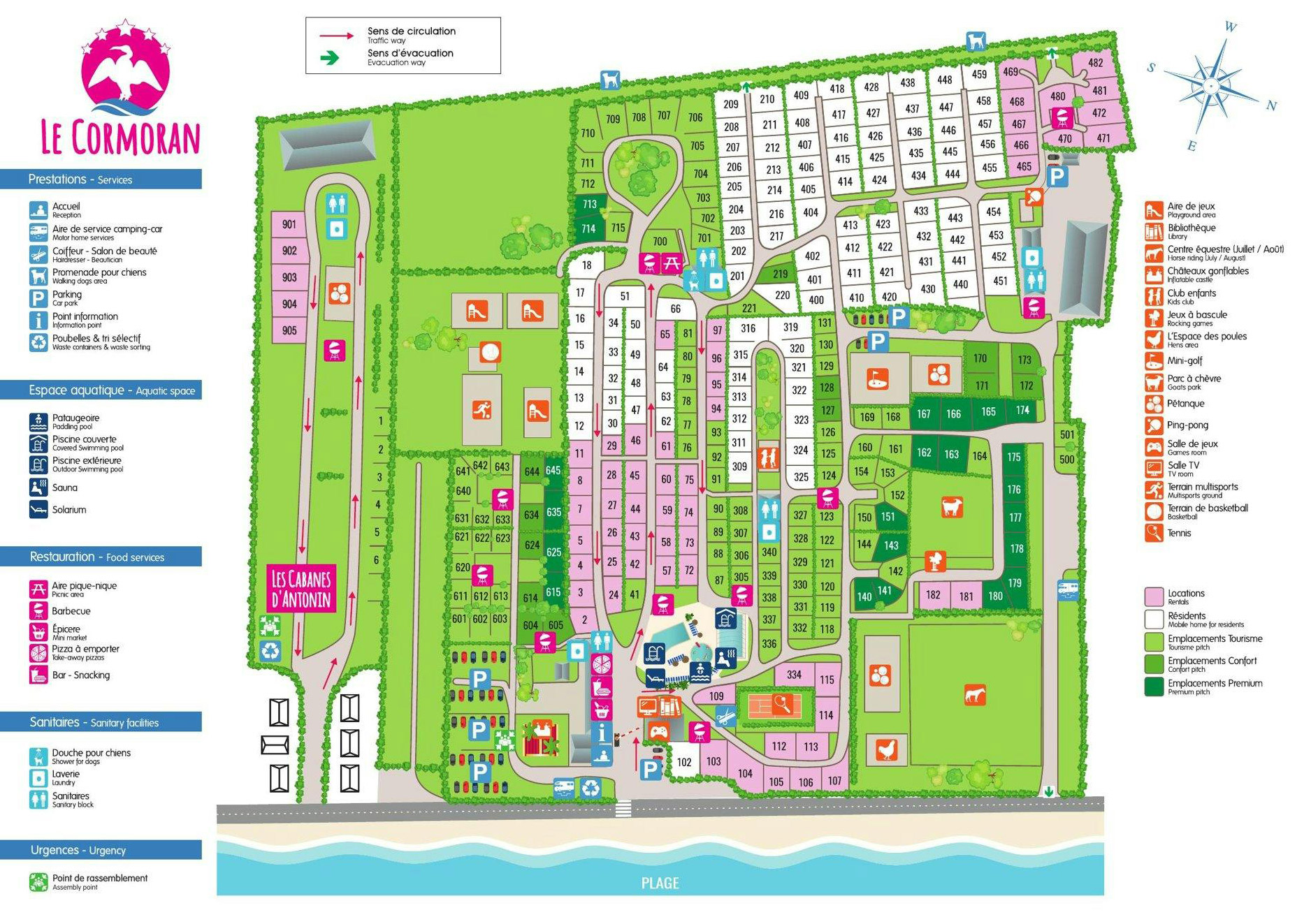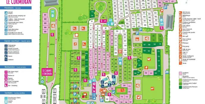 Der Campingplatz Le Cormoran ist ein großer Fünf-Sterne-Campingplatz mit viel Platz zum Campen, Mieten und für Dauercamper. Hier gehen Ruhe, Natur und das Leben im Freien Hand in Hand mit dem Genuss von Speisen und Getränken aus der Normandie. Sie möchten campen und wünschen eigene Sanitäranlagen? Dann buchen Sie einen Stellplatz mit privaten Sanitäranlagen. Wenn Sie nur eine Nacht bleiben, gibt es auch preiswerte Wanderplätze ohne Stromanschluss. Die Mobilheime sind unterschiedlich luxuriös ausgestattet, einige sind auch behindertengerecht. Am Schwimmbad gibt es auch einen speziellen Stuhl für den Einstieg ins Wasser. Auch Hunde sind willkommen und es gibt eine spezielle Hundedusche und einen Freilaufbereich. Ideal für Strandspaziergänge mit Ihrem Hund.