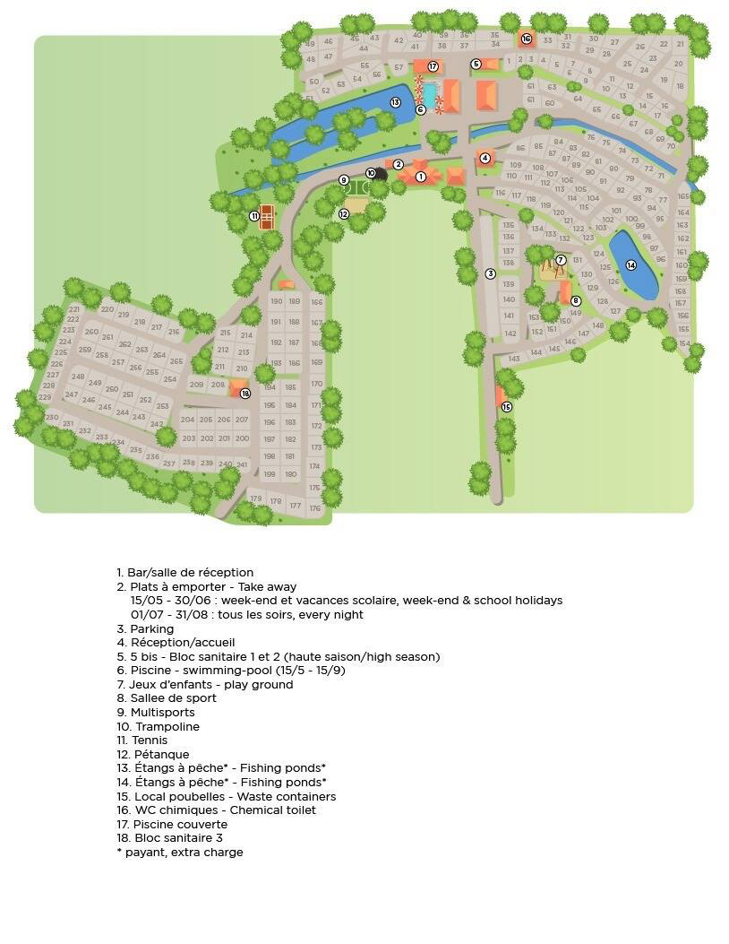 Auf dem Campingplatz gibt es einen schönen Außenpool mit Planschbecken und Rutsche. Es gibt auch viele Liegestühle, um sich mit französischem Vitamin D zu versorgen. Außerdem gibt es auf dem Gelände nicht weniger als 6 Teiche. Vergessen Sie also nicht, Ihre Angelausrüstung einzupacken. Außerdem gibt es zahlreiche Sport- und Spieleinrichtungen. Ein weiteres großes Plus ist ein großer Indoor-Spielplatz.