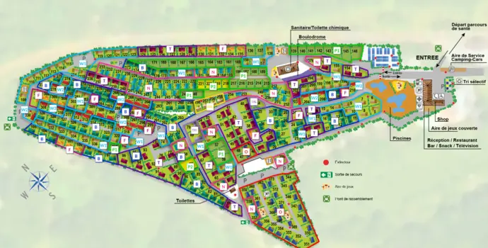 Alle Einrichtungen des Campingplatzes befinden sich in zentraler Lage. Dies ist ein freundlicher Ort für Jung und Alt. Auf einem der Spielplätze, beim Tischfußball, Tischtennis oder im Miniclub lassen sich leicht Freundschaften schließen. Für regnerische Tage gibt es den Indoor-Spielplatz. Wenn Sie im Sommer die Formel 1 oder die Tour de France sehen möchten, können Sie in den Fernsehraum gehen. An der Bar können Sie sich einen Drink genehmigen. Sie campen in der Region, aus der der berühmte Käse "Brie" stammt. Brie, Baguette und Wein scheint mir eine ideale Kombination zu sein.