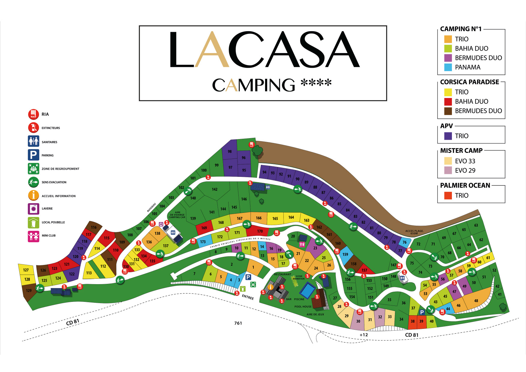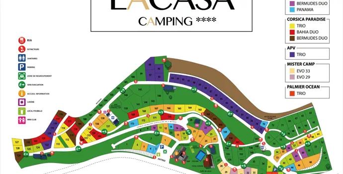 Der Vier-Sterne-Campingplatz Lacasa liegt auf einem Berg, umgeben von viel Grün. Das ist schön, denn es sorgt für den nötigen Schatten und Kühle. Ein privater Weg vom Campingplatz aus führt Sie in 10 Minuten zum weißen Sandstrand und zum Mittelmeer. Seine Lage am Mittelmeer macht ihn zu einem Paradies für Wassersportler. Sie campen auch in der Nähe der Inselhauptstadt Ajaccio. Geburtsort von Napoleon Bonaparte. Neben all der Kultur und Geschichte in der Stadt erwartet Sie eine wunderschöne, unberührte Natur.