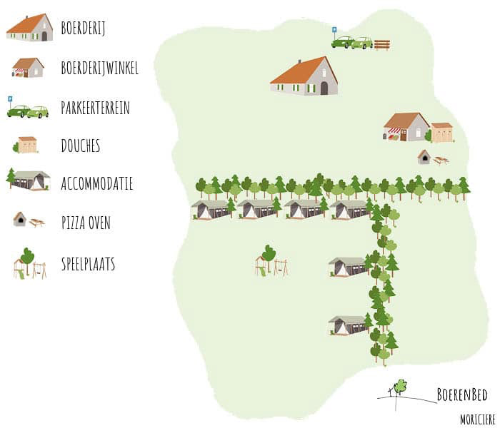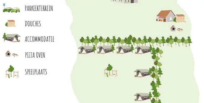 Es gibt nur 6 geräumige Campingplätze und eine Reihe von möblierten Safarizelten. Diese sind komfortabel und bieten Platz für 6 Personen. Unter der überdachten Veranda können Sie bequem sitzen. Der Campingplatz ist von Mitte April bis Ende September geöffnet. Für Tierliebhaber ist dies ein toller Campingplatz. Vor Ort gibt es auch einen Hofladen.