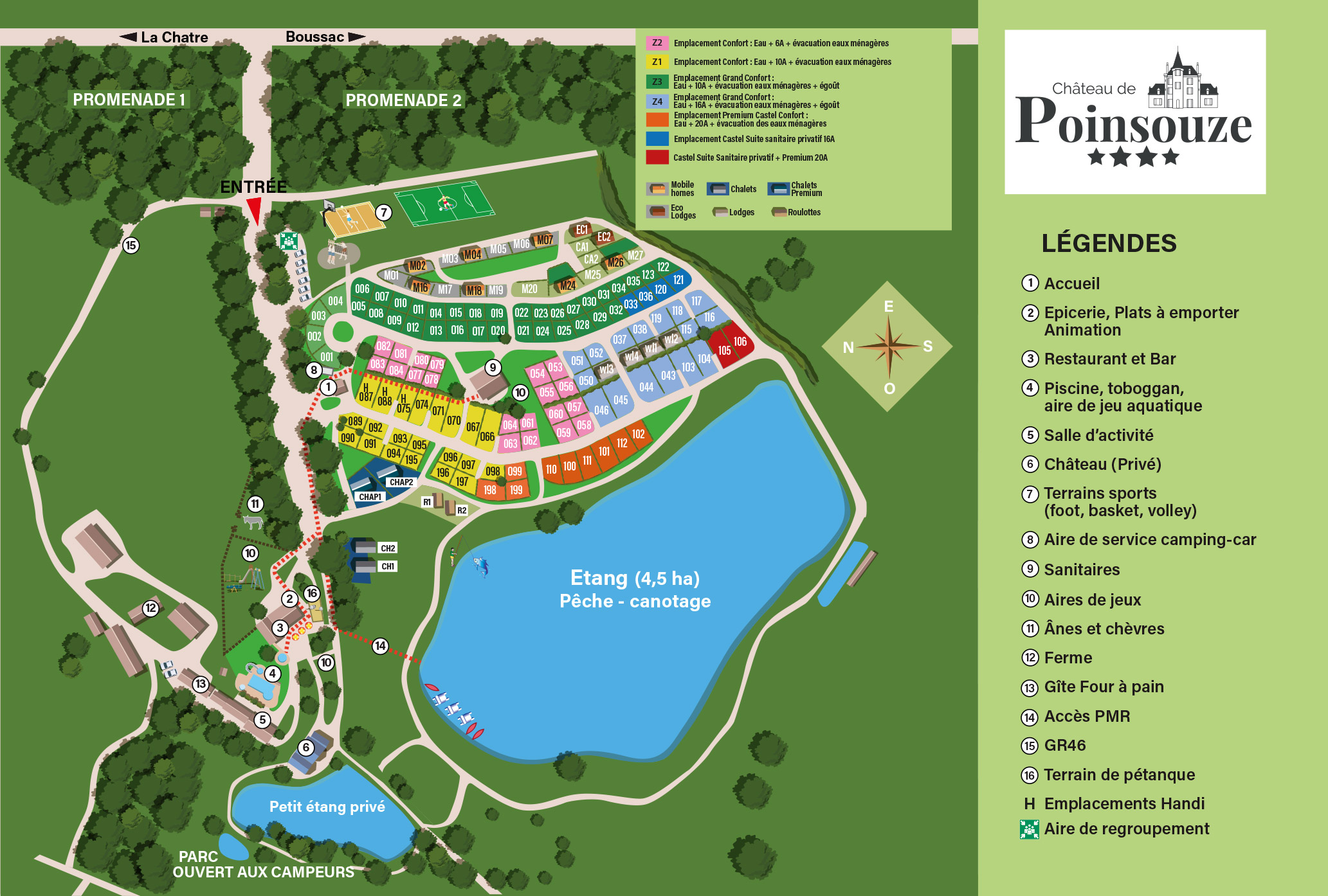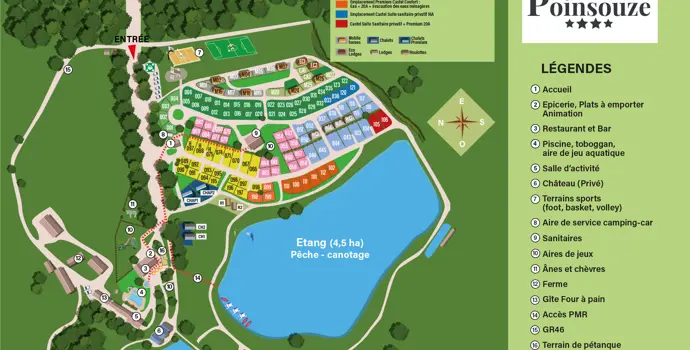 Für die Campingsaison 2025 ist eine Reihe von Neuerungen geplant. Dazu gehören eine Reihe neuer Premium-Cottages. Sie können auch in den Nebengebäuden des Landguts in Gites wohnen. Das Schwimmbad verfügt über mehrere Becken mit einem Wasserspielbereich und ist sehr schön am See gelegen.