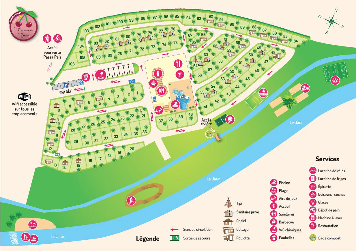 Der Campingplatz Les Cerisiers du Jaur liegt an einem wunderschönen Ort, an dem grüne Hügel, Wälder und der plätschernde Fluss Le Jaur aufeinandertreffen. Weiter nach Südfrankreich, wo wir nordwestlich der Stadt Beziers auf diesen gemütlichen Vier-Sterne-Familiencampingplatz stoßen. Schon wenn man durch das Tor fährt, spürt man die Ruhe, sieht all die hübschen Blumen und ein wenig weiter den Swimmingpool, der einladend aussieht. Auch aus der kleinen Bar duftet es nach frisch gebackenen Crêpes.