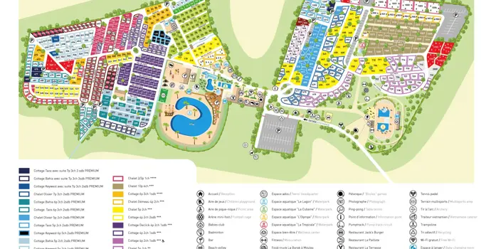 Wie für den Pool-Komplex, einer der Gründe für die Wahl dieses Campingplatzes im Besonderen. Aufgeteilt in vier Bereiche, kann sich hier jeder austoben. Mit der Familie auf der Vier-Personen-Rutsche oder auf einer der anderen spektakulären Rutschen? Die exotische Lagune mit ihren Palmen und Bananenstauden ist ebenfalls eine wahre Schönheit. Der Strand ist weißer als weiß und das Wasser blauer als blau. Darin verbirgt sich das Spielschiff für die Kinder. Ob Sie nun ein paar flotte Runden im olympischen Schwimmbecken drehen wollen oder zum Sprudeln kommen, alles ist möglich. Und vergessen Sie nicht das subtropische Hallenbad, das ebenfalls zum Campingplatz gehört.