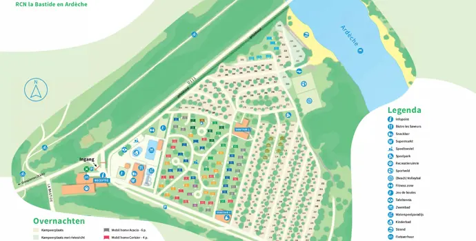 Mehr Wasserspaß finden Sie übrigens im Schwimmbad mit Kinderbecken und schönen Liegen. Haben Sie schon die Rutschen gesehen? Dieser Fünf-Sterne-Campingplatz der RCN-Kette ist zu Recht als einer der besten Kindercampingplätze Europas nominiert worden. Dieser Campingplatz hat wirklich alles zu bieten. Von der Verpflegung, den Sportplätzen, den Sanitäranlagen, der Wäscherei bis hin zu den Spielmöglichkeiten ist alles komplett und komfortabel. Genau wie auf den anderen RCN-Campingplätzen in Frankreich finden Sie hier auch eine Ferienkirche. Von Mai bis September gibt es ein umfangreiches Unterhaltungsprogramm, das von niederländischsprachigem Personal geleitet wird. Machen Sie mit, oder ziehen Sie sich mit einem Buch aus der Bibliothek an den Fluss zurück.
