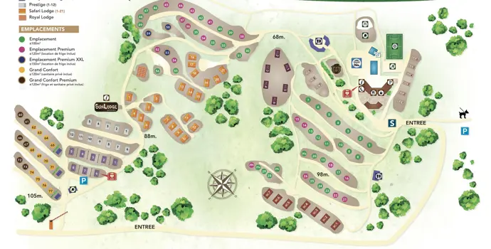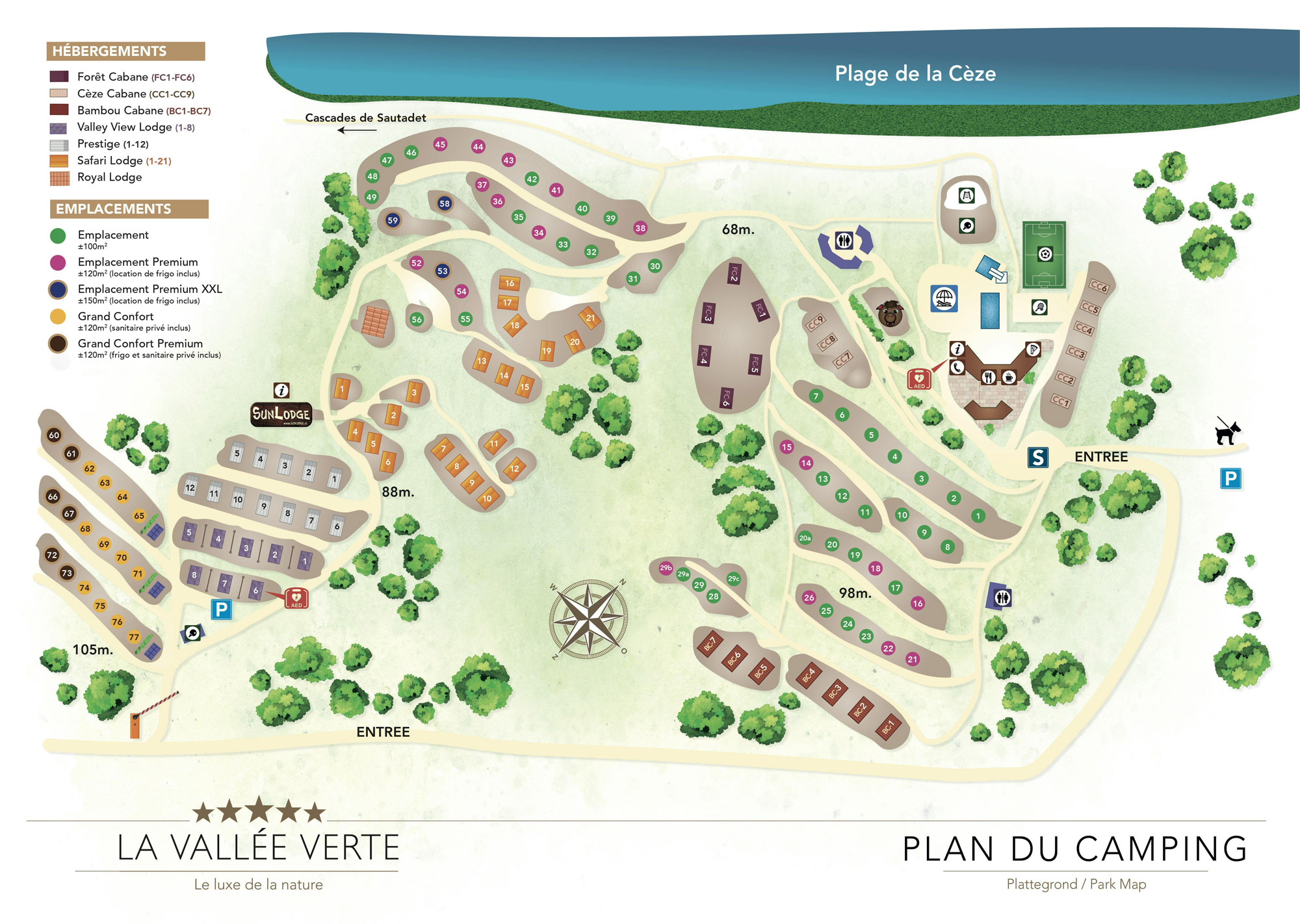 Der Campingplatz selbst bietet reichlich Platz zum Mieten und Campen. Auch dank der grünen Umgebung und der entspannten Atmosphäre wirkt der Campingplatz nicht überladen. Der Titel des Campingplatzes lautet nicht umsonst "slow living". Bitte teilen Sie uns im Voraus mit, wie groß Ihre Campingausrüstung ist und ob Sie neben einem Strom- auch einen Wasseranschluss wünschen. Die luxuriösesten Stellplätze verfügen übrigens über eigene Sanitäranlagen. Besonders nett: An der Rezeption wird Niederländisch gesprochen. Und dann sind da noch die Mietunterkünfte. Es gibt Holzhütten, stilvolle Öko-Lodges und voll ausgestattete Safarizelte. Auf Wunsch auch mit Klimaanlage. Die Unterkünfte sind für 2 bis 6 Personen verfügbar. Dank der terrassenartigen Anlage haben Sie von vielen Stellen aus einen schönen Blick auf das Tal.