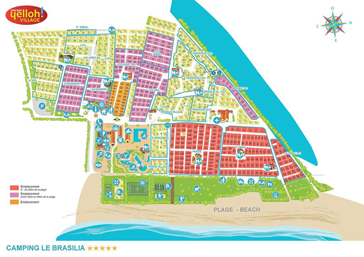 Yelloh! Village la Brasilia sagt eigentlich schon alles: Wir sind viel mehr als ein Campingplatz! Es ist wirklich ein komplettes Dorf, nur wenige Schritte vom azurblauen Meer entfernt. Stellen Sie sich vor, Sie wären in tropischen Sphären.