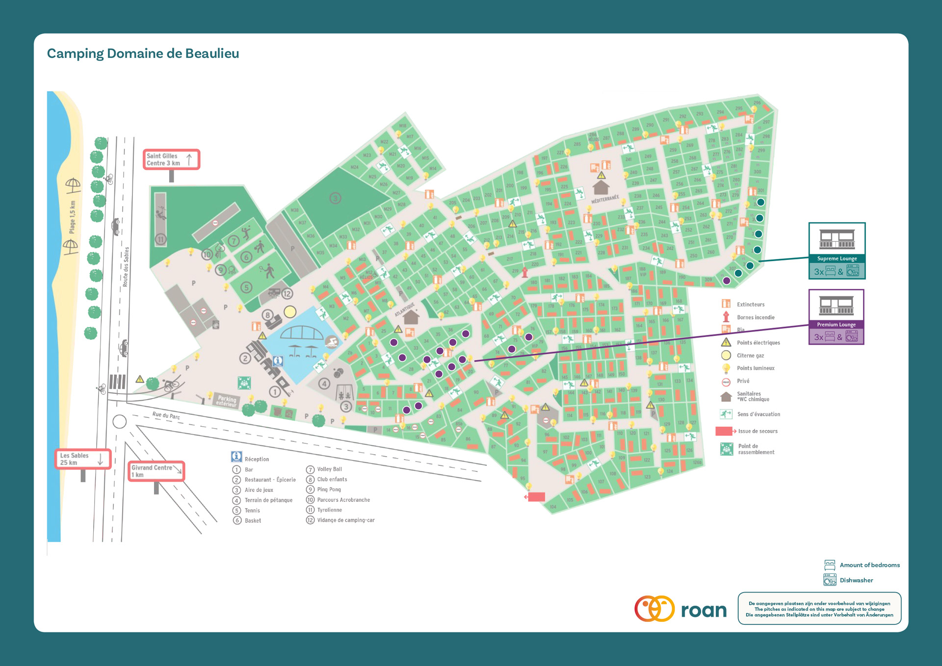 Der Campingplatz La Domaine de Beaulieu befindet sich auf einem Gelände hinter einem authentischen französischen Bauernhof. Dieser Vier-Sterne-Campingplatz verfügt über verschiedene Arten von Stellplätzen und Mobilheimen. Es gibt hier auch Unterkünfte für größere Familien oder wenn Opa und Oma auf diesen Campingplatz kommen (Mobilheime für bis zu 10 Personen). Neben dem weitläufigen Wasserpark finden Sie den Atlantik nur 20 Minuten Fußweg vom Campingplatz entfernt. Das können nicht viele Campingplätze bieten. Der Tag beginnt mit einem echten französischen Croissant und Baguette, die Sie auf dem Campingplatz bekommen können. Übrigens gibt es auch andere Lebensmittel im Laden. Lust auf einen Snack am Nachmittag? Auch das können Sie problemlos auf dem Campingplatz kaufen. Ihr Urlaub ist eine gute Gelegenheit, um mit der Familie eine andere Sportart auszuüben. Wie wäre es mit Tennis, Airhockey, Tischfußball oder Petanque?