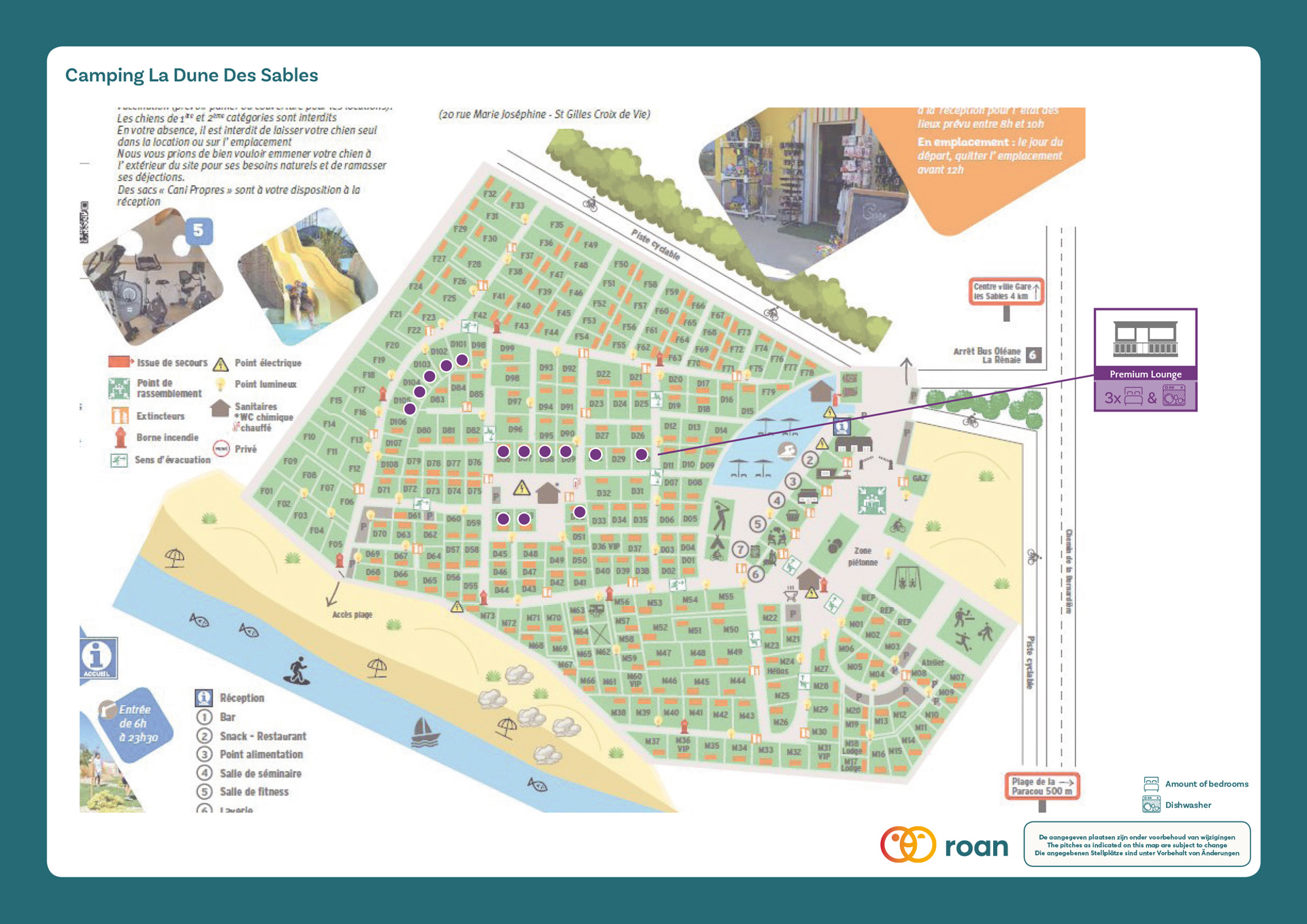 Je verblijft op een rustige familiecamping met 250 plaatsen in het duingebied van Les Sables-d'Olonne. De camping zelf is vlak en wat open richting zee. Kies zelf vooral je favoriete kampeerplekje; die aan zee, die met privé-sanitair of toch liever vlakbij alle voorzieningen. Naast kamperen kun je hier ook stacaravans, safaritenten en bungalowtenten huren. Kies zelf het comfort wat bij je past. De camping is geopend vanaf april tot november en hiermee echt een aanrader voor het voor- of naseizoen. Ook met een camper ben je van harte welkom. In juli en augustus is er een uitgebreid animatieprogramma voor jong en oud. In de ochtend kunnen de kinderen lekker knutselen en spelletjes doen terwijl jij aansluit voor een uurtje aqua gym. Nieuw is de indoor fitnessruimte. Ook in de avond is er een gevarieerd programma, dus op naar het terras voor livemuziek of een leuke show.