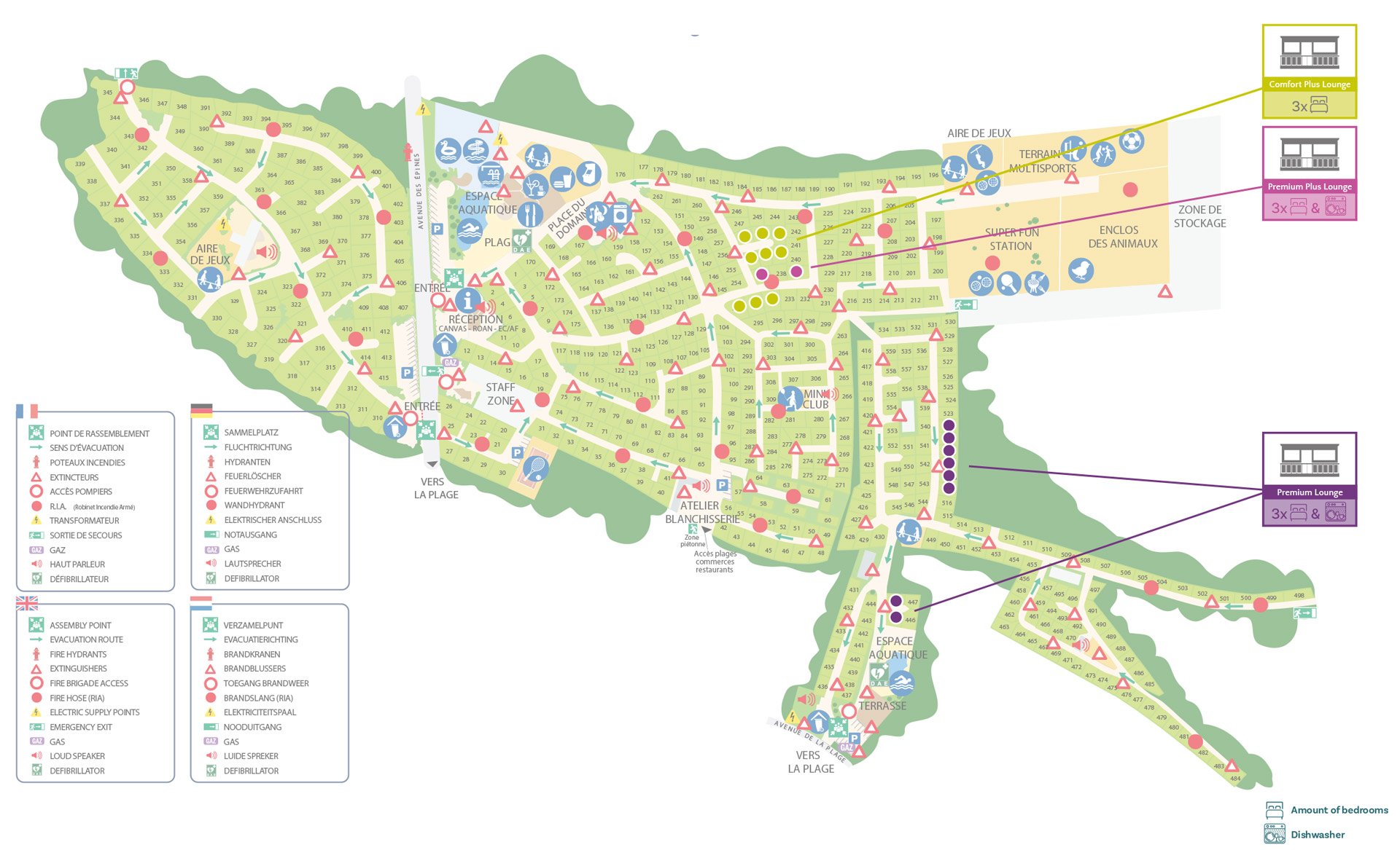 Op deze camping staan veel verschillende type stacaravans verschillend in luxe, de grootsten zijn geschikt voor 8 personen. Er zijn ook diverse Nederlandse touroperators aanwezig op deze camping. Ook kun je handige zaken bij huren zoals een bad- of bedlinnen pakket, dat scheelt toch weer een hoop ruimte in de auto! De super fun station is een gebied waar de animatie te vinden is. Aangepast in verschillende leeftijdscategorieën worden de kinderen hier beziggehouden. Deze camping heeft een paar toffe extra faciliteiten die je niet snel op andere campings in de regio vindt zoals een klimwand en tokkelbaan!