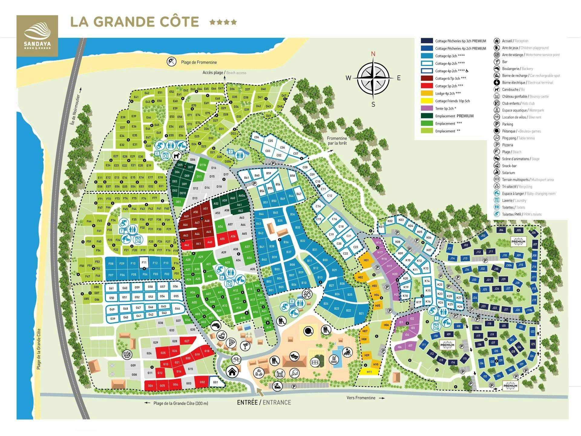 Der Campingplatz Sandaya La Grande Côte ist ein Vier-Sterne-Campingplatz in La Barre-de-Monts, an der Atlantikküste der Vendée. Seine Lage ist eine der Stärken dieses Campingplatzes: Sie haben direkten Zugang zum Strand von Fromentine, mit Blick auf die Insel Noirmoutier. Außerdem sind Sie von Wäldern und Dünen umgeben, die zu Spaziergängen und Fahrradtouren einladen.