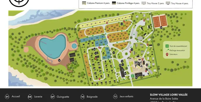 Der Name des Campingplatzes verrät schon viel. Hier geht es ein bisschen langsamer zu, aber das ist okay, es ist ja schließlich Urlaub. Sobald Sie auf den Campingplatz fahren, sehen Sie es: Grün überall. Zuerst das grüne Gras, auf dem Sie Ihr Zelt oder Ihren Wohnwagen aufstellen werden. Die Stellplätze sind geräumig, einige mit Stromanschluss, und für diejenigen, die sich auf das Wesentliche beschränken wollen, gibt es einfache Stellplätze direkt am Wasser. Dies ist auch ein guter und leicht zugänglicher Platz, wenn Sie auf der Durchreise sind. Und die Loire ist überall auf dem Campingplatz zu hören. Bei den Mietunterkünften haben Sie die Qual der Wahl. Von winzigen Häuschen bis hin zu voll ausgestatteten Cabanas - alle Unterkünfte scheinen sich in die Umgebung einzufügen.