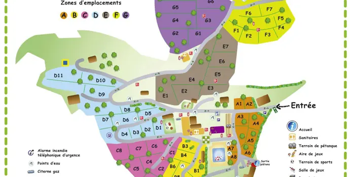 Der Campingplatz ist sehr schön von jahrhundertealten Olivenbäumen und anderen mediterranen Baumarten umgeben. Sie campen zwischen Bergen und dem Meer, so dass Sie sowohl an der Küste als auch im Hinterland Zeit verbringen können. Der Campingplatz selbst verfügt über etwa 50 Stellplätze für Zelte, Wohnwagen oder Wohnmobile. Diese Stellplätze, die teilweise im Schatten liegen, sind nicht eng abgegrenzt, um die Natur zu erhalten. Darüber hinaus gibt es Mietunterkünfte, nämlich Chalets und Gites für 1-4 Personen. Die Ferienhäuser können das ganze Jahr über gebucht werden. Der Campingplatz ist vom 1. Mai bis zum 30. September geöffnet.