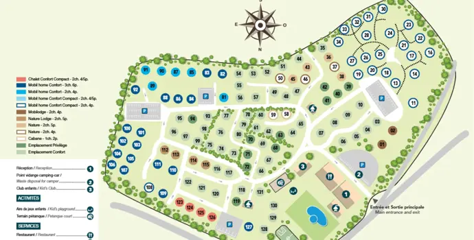 Auf dem Campingplatz gibt es viel zu tun, das sehen Sie schon, wenn Sie auf den Platz fahren. Die meisten Einrichtungen befinden sich an der Vorderseite des Campingplatzes. Die Kleinen haben Spaß auf dem Spielplatz oder bei der Animation, während die älteren Kinder den Innenbereich lieben. Und warum? Euhm kostenloses Wifi, Sie müssen doch mit der Heimatfront in Verbindung bleiben, oder? Im beheizten Außenpool kommen alle zusammen. Ein weiterer Lieblingsplatz ist die große Terrasse beim Restaurant.