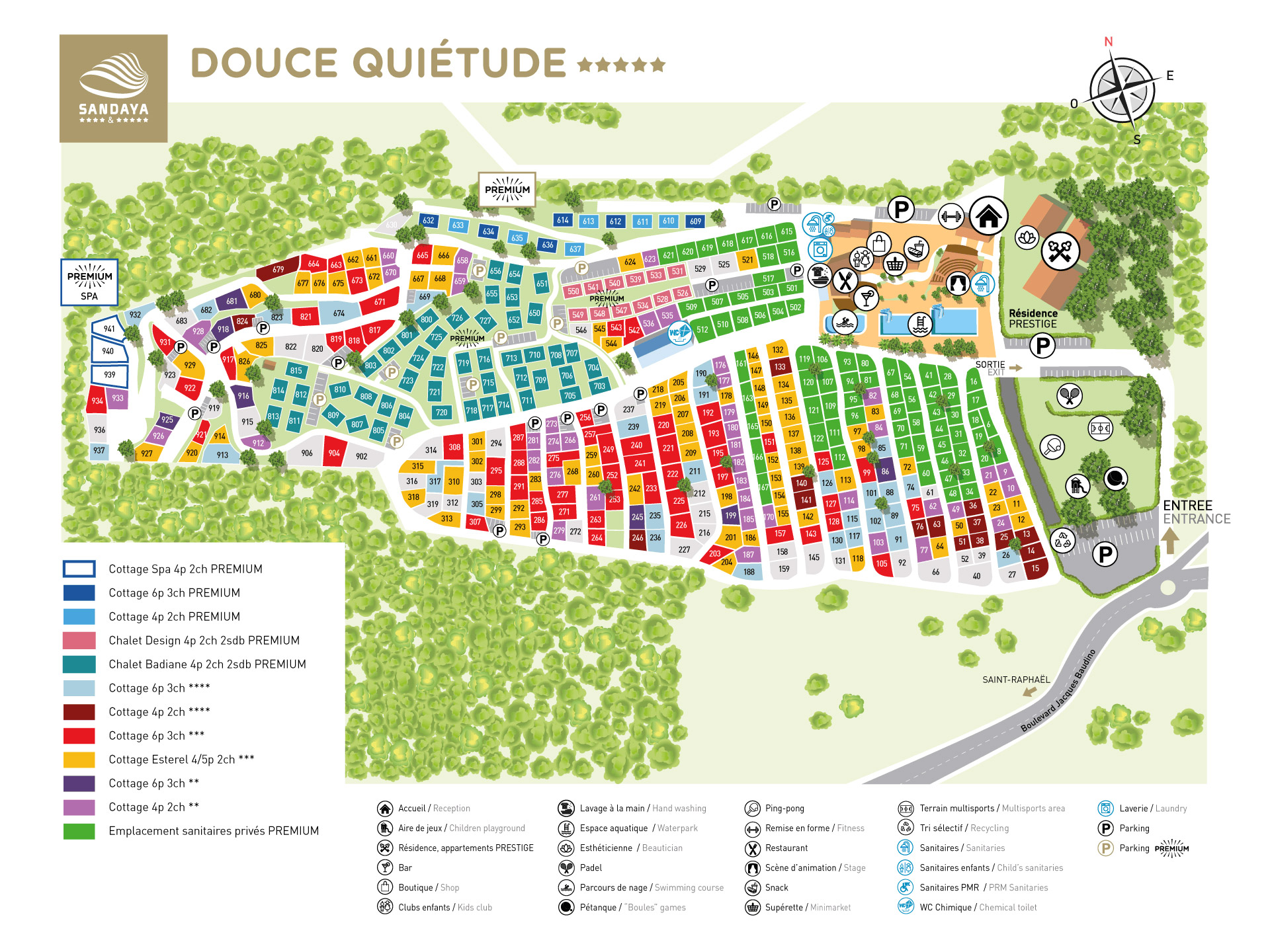 Im Herzen der Côte d'Azur, in der Nähe der schönsten Buchten und attraktivsten Städte, liegt ein großer Fünf-Sterne-Campingplatz. Willkommen in Sandaya Douce Quietude! Ein Campingplatz mit einem großen Wasserpark und umfangreichen Wellnesseinrichtungen. Genießen Sie den Zen-Garten, buchen Sie eine Massage oder eine Tai-Chi-Stunde und entspannen Sie im Dampfbad.