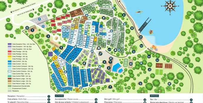 Der Campingplatz verfügt über einen schönen beheizten Swimmingpool mit Kleinkinderbereich und Wasserspielplatz. Er ist von einer großen Terrasse mit Liegestühlen umgeben, auf der Sie sich entspannen und bräunen können. Unterhalb des Campingplatzes befindet sich ein Kieselstrand am Fluss Verdon. Da es an diesem Abschnitt kaum Strömung gibt, kann man hier spielen und schwimmen. Und noch mehr Wasserspaß, ein echtes Plus für diesen Campingplatz ist der direkte Zugang zum See. Hier können Sie auch Kanus, Tretboote, Boote und Paddelboards ausleihen. Auch sportliche Camper kommen auf dem Campingplatz voll auf ihre Kosten. Es gibt Tennisplätze, Padelplätze, einen Fitnessraum und Sie können Bogenschießen und Tischtennis spielen. Sie sind hungrig von all den sportlichen Aktivitäten? Dann ist es Zeit für ein erfrischendes Getränk in der Bar/Restaurant oder ein Eis im Campingladen.