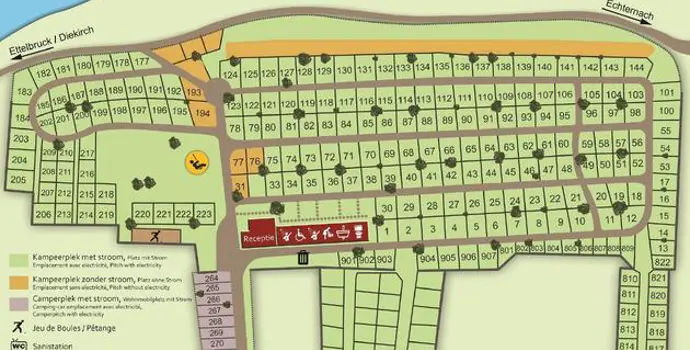 Außerdem gibt es auf diesem Campingplatz einen großen Spielplatz. In der Nähe des Platzes finden Sie auch einen Fußballplatz, einen Basketballplatz und, für die echten Draufgänger, eine Halfpipe. Der Campingplatz de la Sûre ist nur 5 Minuten zu Fuß vom Zentrum von Diekirch entfernt.