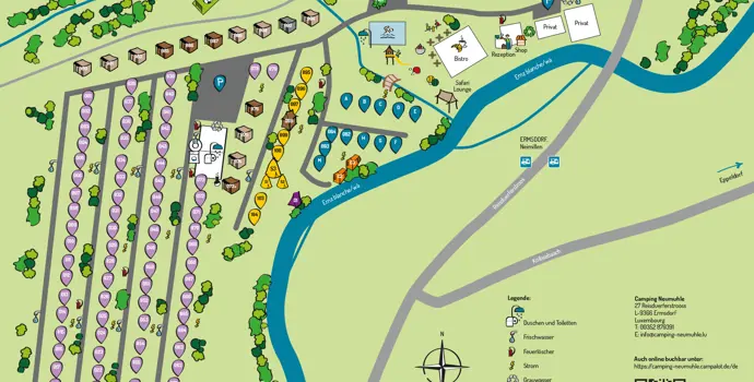 Camping Neumühle ist ein Familiencampingplatz in Luxemburg. Dieser Campingplatz liegt am Fluss l'Ernz Blanche in Mullerthal, das auch als "Kleine Schweiz" bekannt ist. Eine wunderschöne Gegend zum Wandern, Radfahren, Mountainbiken, Kajakfahren und vieles mehr.