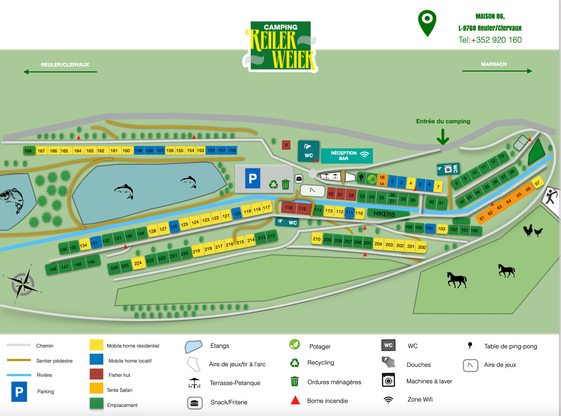 Der Campingplatz Reiler liegt mitten in den Luxemburger Ardennen, direkt an einem rauschenden Fluss. Auf diesem Campingplatz können Sie wirklich in der Natur auftanken und die Ruhe und den Platz genießen. Die +- 40 Stellplätze befinden sich hauptsächlich im Erdgeschoss. Es gibt auch Stellplätze im 1. und 2. Stock.